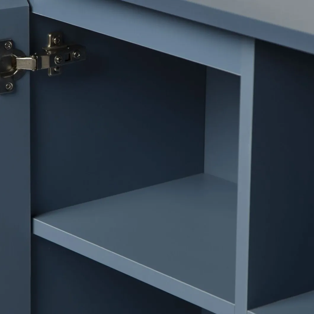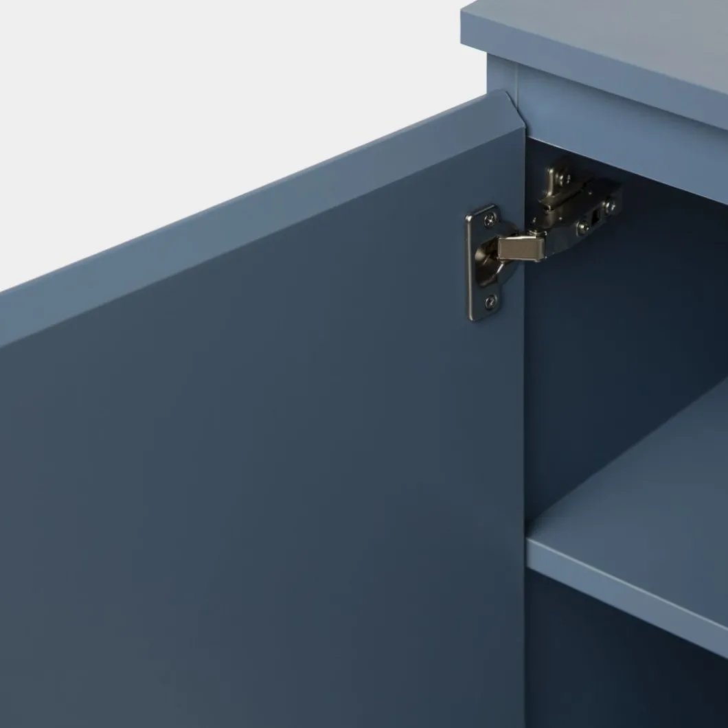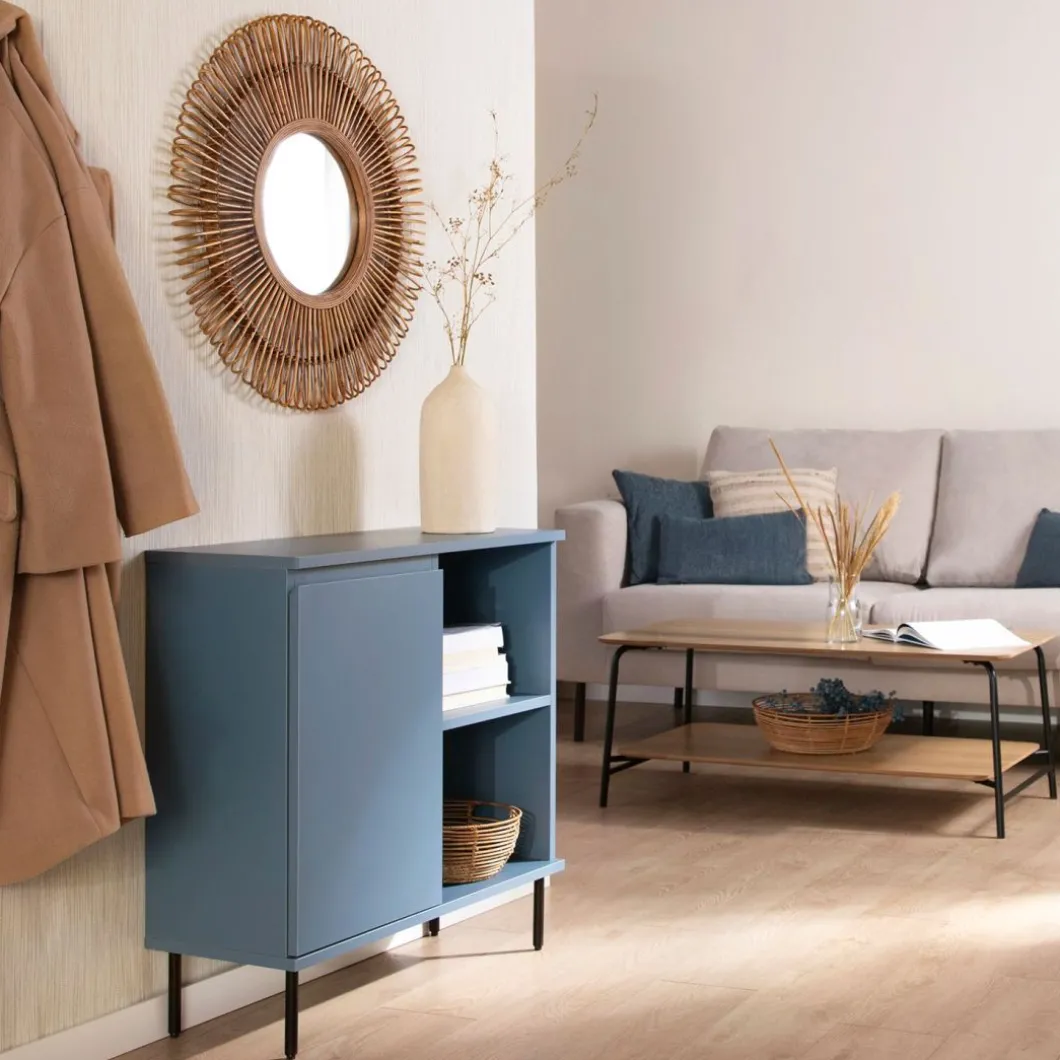 Aporta personalidad y color a tu entrada con el mueble recibidor en madera color azul Esben. Dispone de una puerta con una balda interior en la que podrás almacenar todo aquello que quieras ocultar y una balda vista para poder almacenar libros o decorarla a tu gusto.Para mayor estabilidad del mueble, aconsejamos su anclaje a pared. Visita el resto de la colección y completa el look.