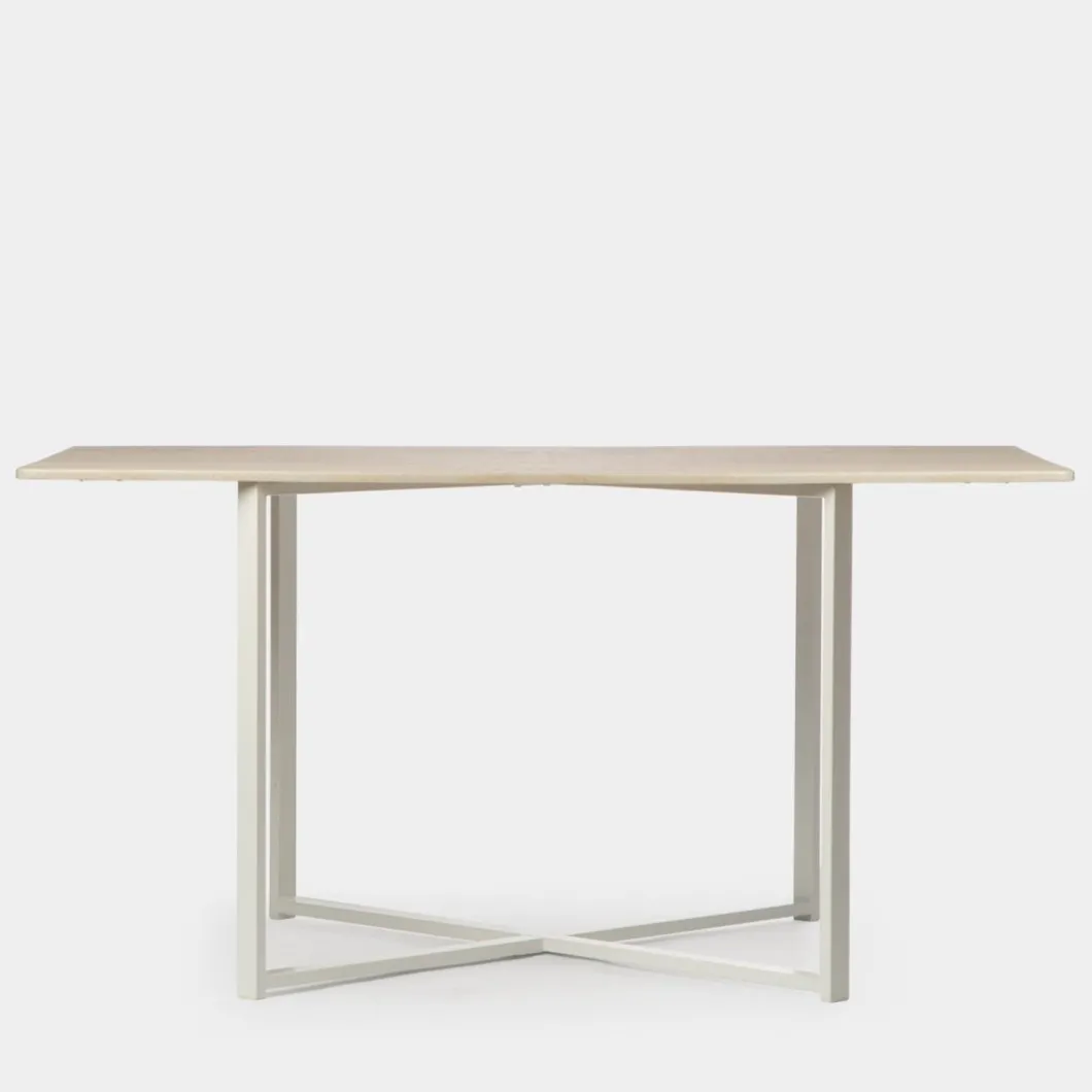 La mesa de comedor rectangular Even presenta un diseño moderno y minimalista. Su sobre en acabado natural efecto roble blanqueado y con patas de acero pintado en color blanco la convierten en la selección perfecta para tu salón, comedor, cocina o despacho. Su sencilla geometría y su diseño armónico ofrecen el carácter elegante que estás buscando. Puedes acomodar hasta 6 invitados.