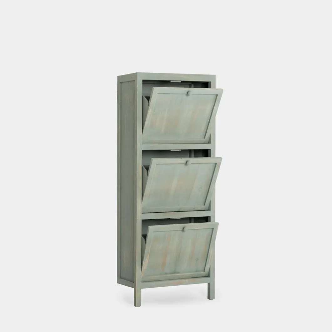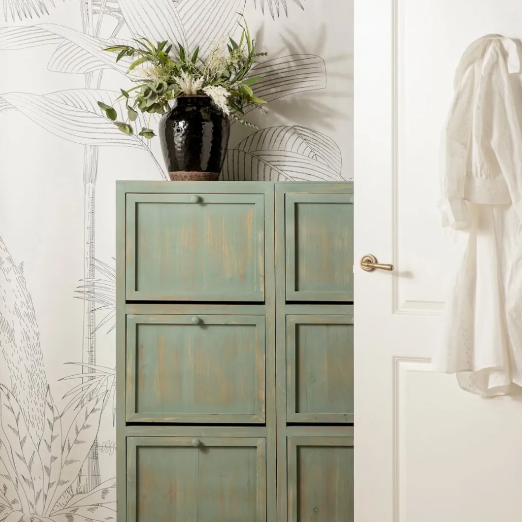 El zapatero Folk, fabricado en madera reciclada libre de tratamientos químicos, fusiona la belleza del estilo natural con la sostenibilidad del upcycling. Cada pieza, elaborada artesanalmente, cuenta una historia única a través de sus imperfecciones y aporta carácter a cualquier estancia. Su tamaño compacto lo hace ideal para zonas de pasillo, recibidores o dormitorios. Dispone de 3 puertas y tiene una capacidad para 6 pares de zapatos. La talla máxima de zapatos que admite es el número 43. No es apto para botas. Requiere anclaje a pared.