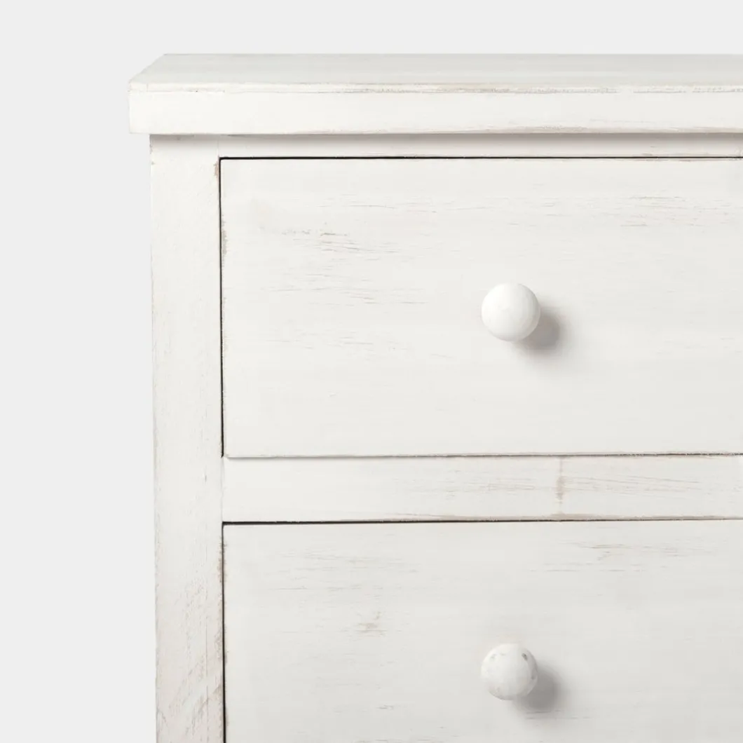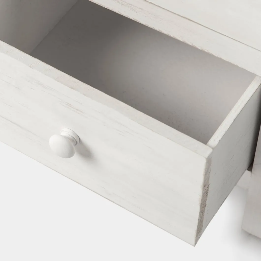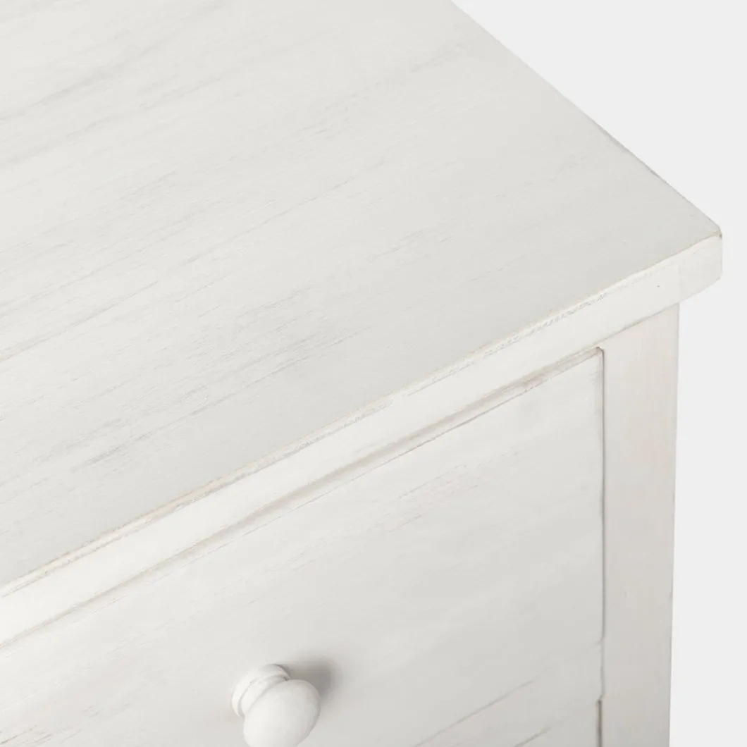 La mesita de noche estrecha blanca Folk, fabricada en madera reciclada libre de tratamientos químicos, fusiona la belleza del estilo natural con la sostenibilidad del upcycling. Cada pieza, elaborada artesanalmente, cuenta una historia única a través de sus imperfecciones y aporta carácter a cualquier estancia. Sus tres cajones te ayudarán a mantener el orden en tu dormitorio. El sistema de cierre de cajones es sin guia.