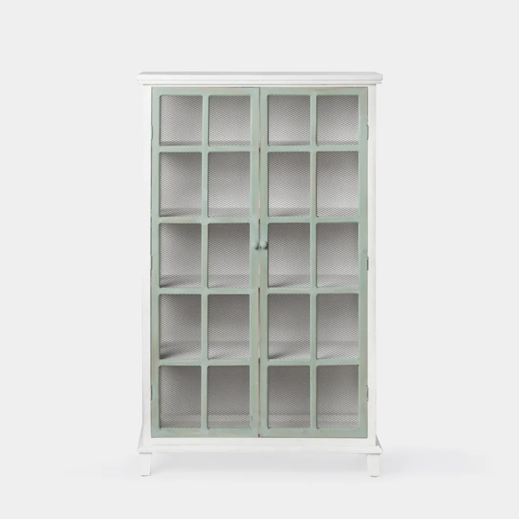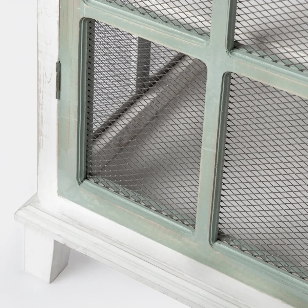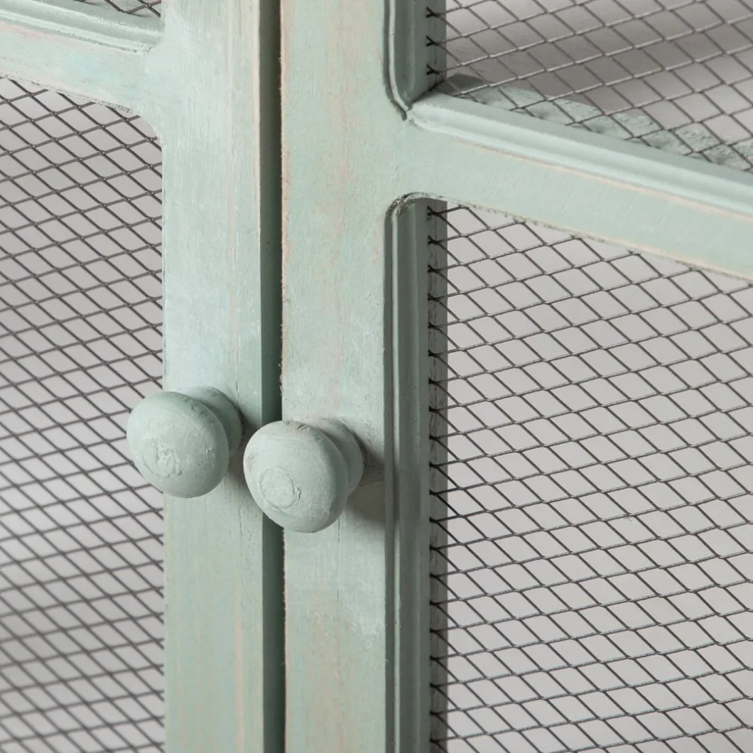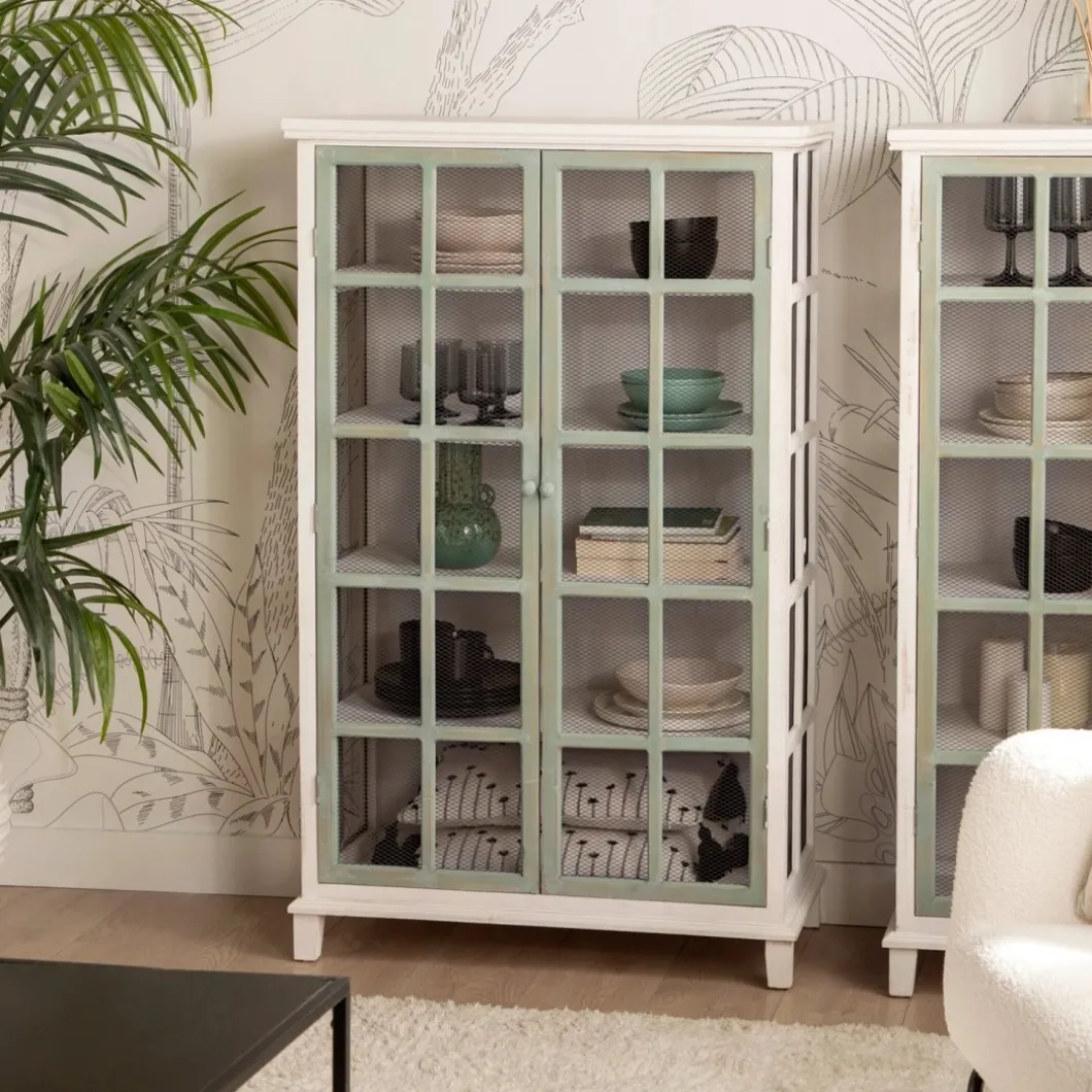 La vitrina Folk, fabricada en madera reciclada libre de tratamientos químicos, fusiona la belleza del estilo natural con la sostenibilidad del upcycling. Cada pieza elaborada artesanalmente, cuenta una historia única a través de sus imperfecciones y aporta carácter al dormitorio. Destacan sus dos puertas, adornadas con una malla metálica que aporta un toque rústico y encantador. Para mayor estabilidad del mueble, aconsejamos su anclaje a la pared.