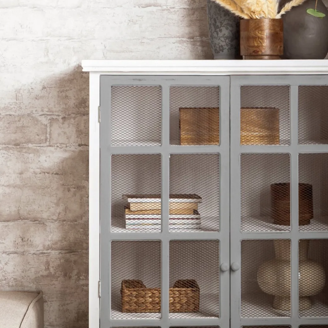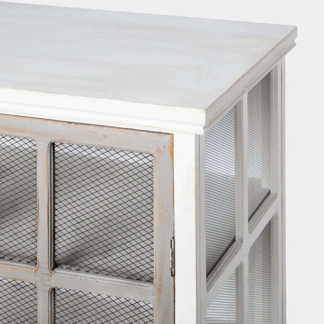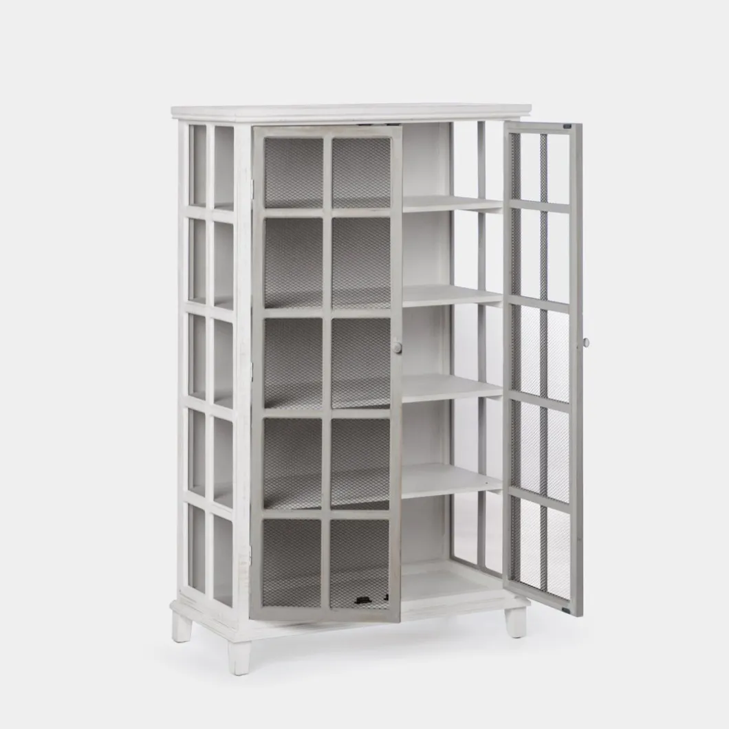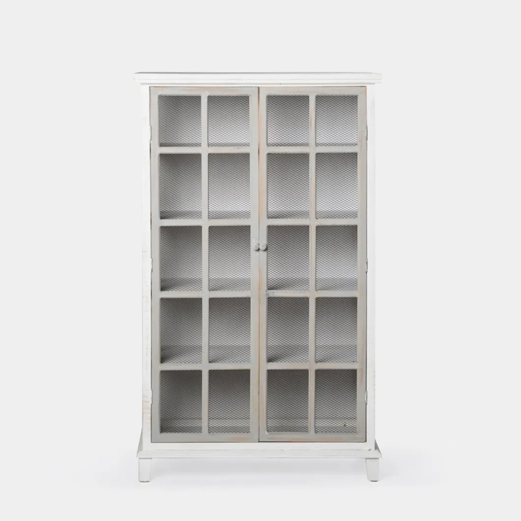 La vitrina Folk, fabricada en madera reciclada libre de tratamientos químicos, fusiona la belleza del estilo natural con la sostenibilidad del upcycling. Cada pieza, elaborada artesanalmente, cuenta una historia única a través de sus imperfecciones y aporta carácter al dormitorio. Destacan sus dos puertas, adornadas con una malla metálica que aporta un toque rústico y encantador. Para mayor estabilidad del mueble, aconsejamos su anclaje a la pared.