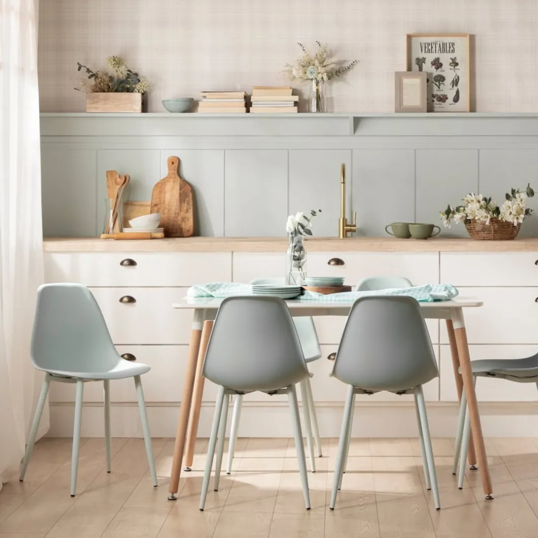 La mesa de comedor rectangular Gless es de estilo nórdico y minimalista. Se convierte en la elección segura si eres un apasionado del diseño escandinavo y tienes un espacio reducido.De líneas rectas, con sobre blanco y patas en acabado natural, esta mesa se convierte en la protagonista de tu salón comedor. Es apta para 4 comensales por lo que podrás vivirla y compartila con familiares y amigos en estancias como la cocina, el comedor o incluso convertila en una mesa de despacho.