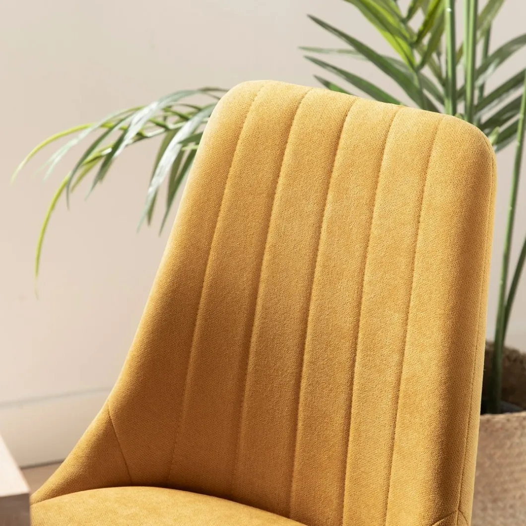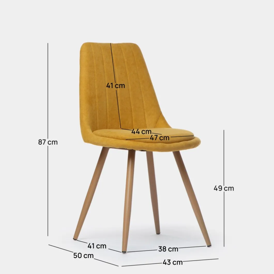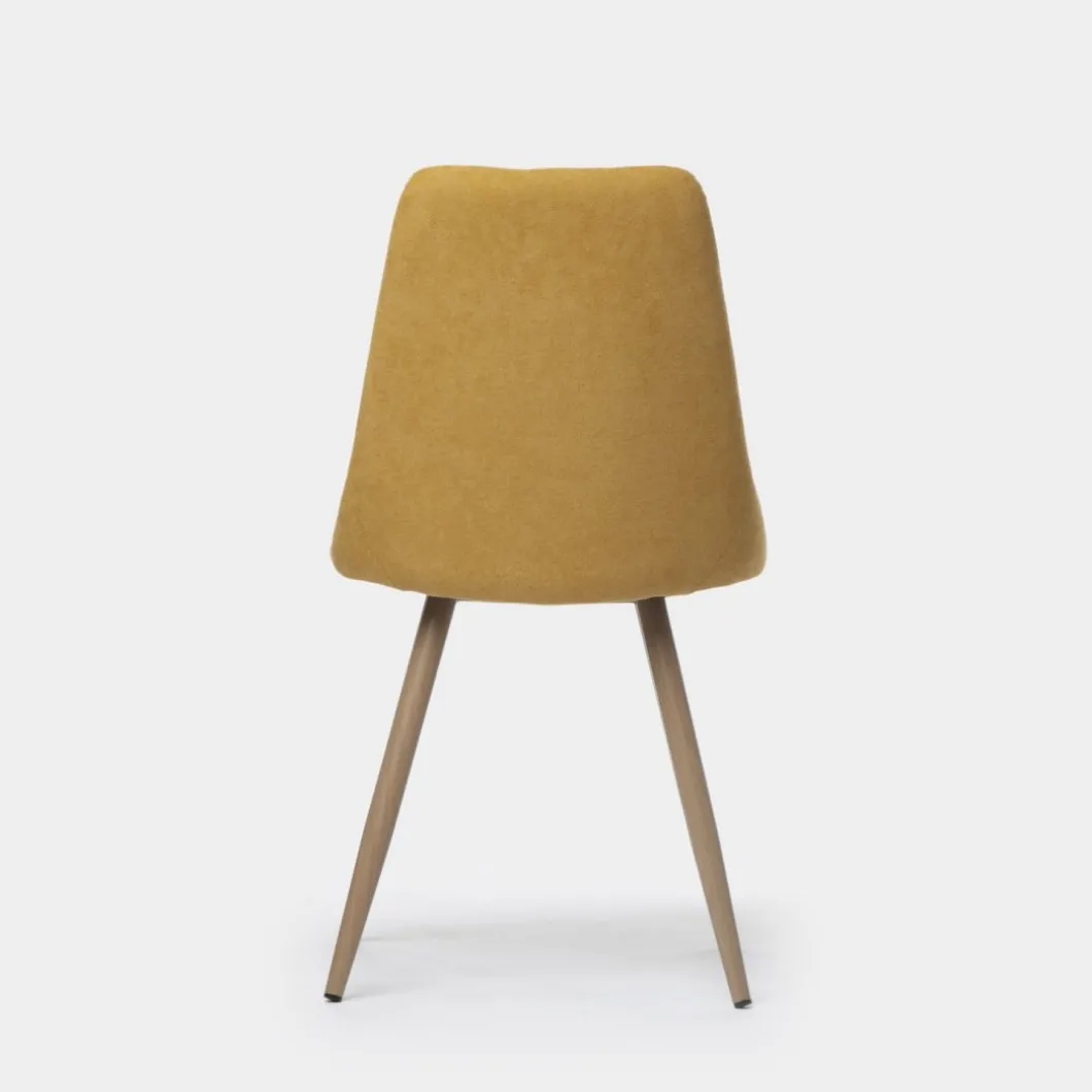 La silla de comedor tapizada Ingrid es una perfecta opción para tu salón o comedor. Con respaldo en poliéster efecto rayado y cojín inferior, esta preciosa silla con patas de metal efecto madera destaca por su cómoda sentada y su diseño de líneas sencillas. Elige uno de los 4 colores disponibles en nuestra web y dale un toque elegante a tu salón.