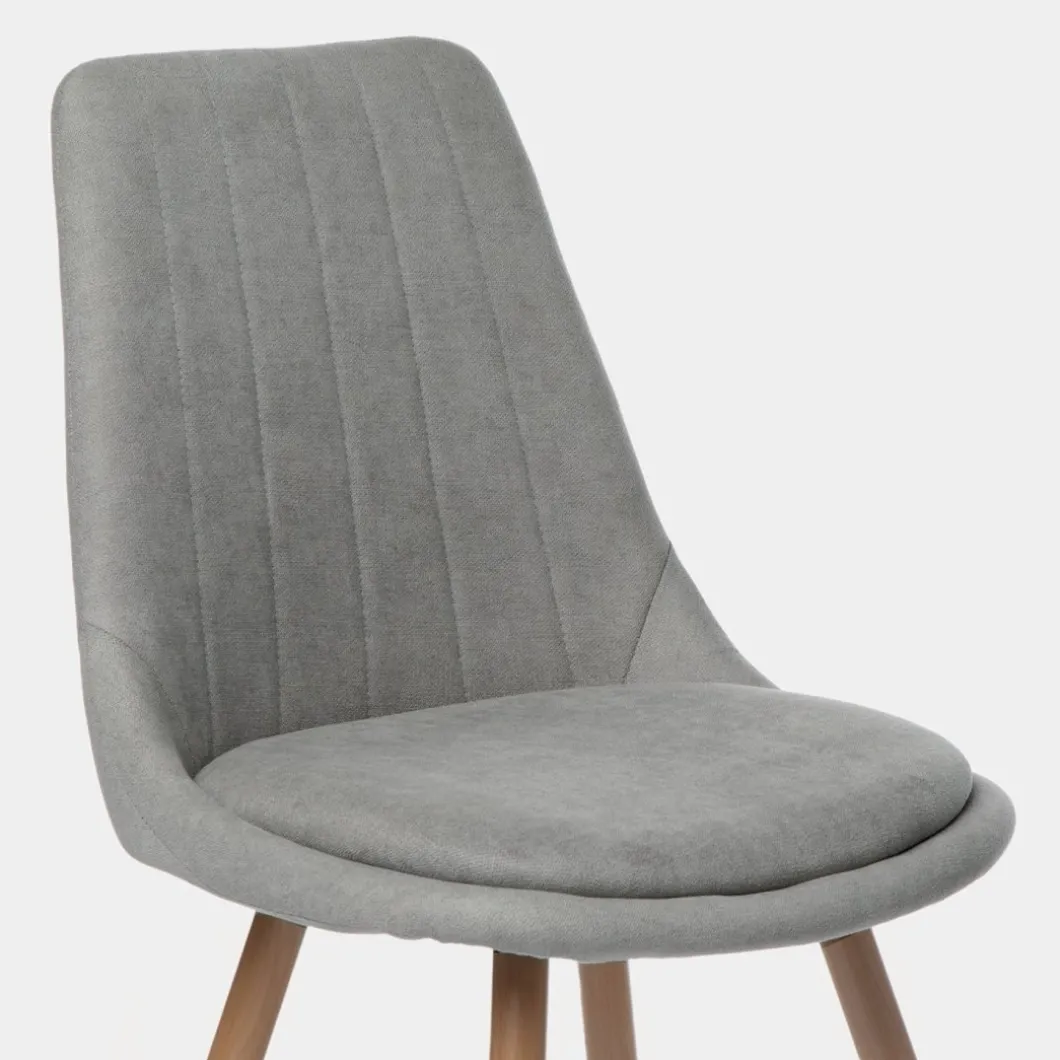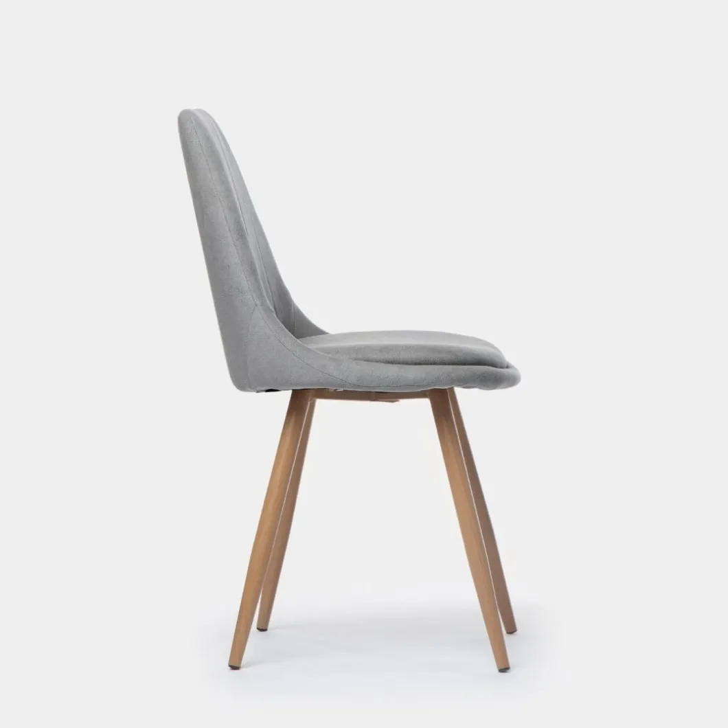 La silla de comedor tapizada Ingrid es una perfecta opción para tu salón o comedor. Con respaldo en poliéster efecto rayado y cojín inferior, esta preciosa silla con patas de metal efecto madera destaca por su cómoda sentada y su diseño de líneas sencillas. Elige uno de los 4 colores disponibles en nuestra web y dale un toque elegante a tu salón.