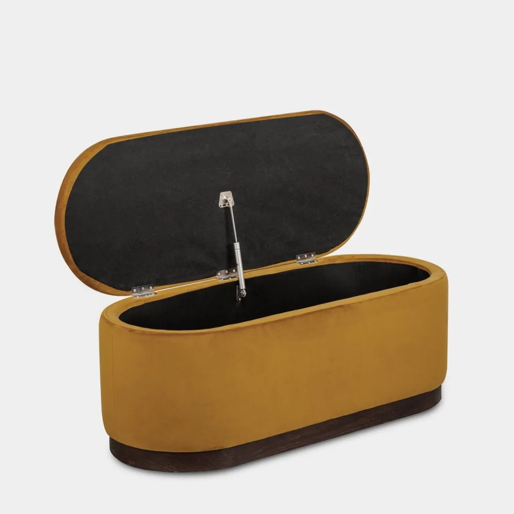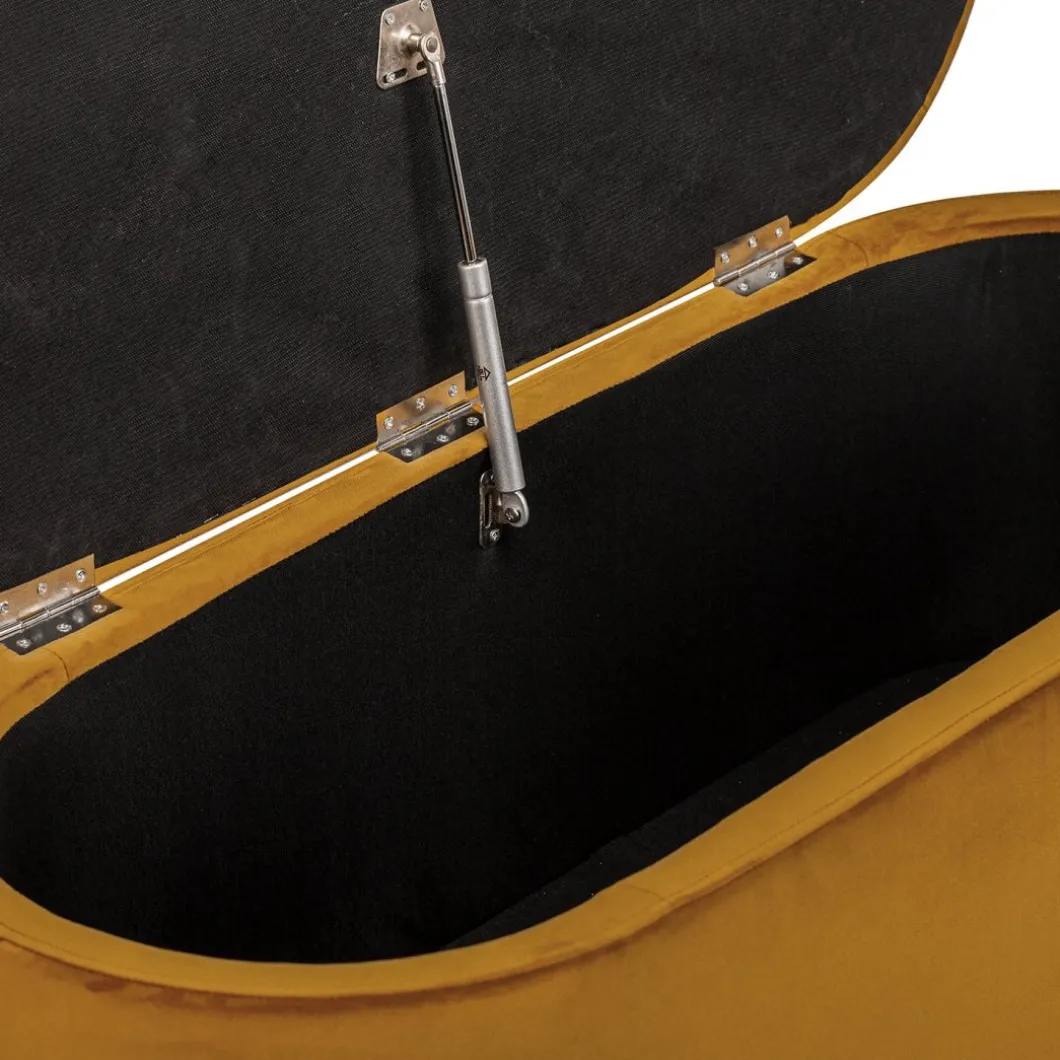 El banco Isola, tapizado en suave terciopelo mostaza, combina estilo y funcionalidad de manera excepcional. Su diseño elegante y acogedor no solo brinda confort, sino que también añade un aire de frescura a cualquier ambiente. Con un práctico compartimento de almacenamiento, es perfecto para mantener organizados mantas, cojines y otros objetos. Ideal para el salón, el dormitorio o el recibidor, el banco Isola se presenta como una pieza versátil y encantadora que realza la decoración de tu hogar.