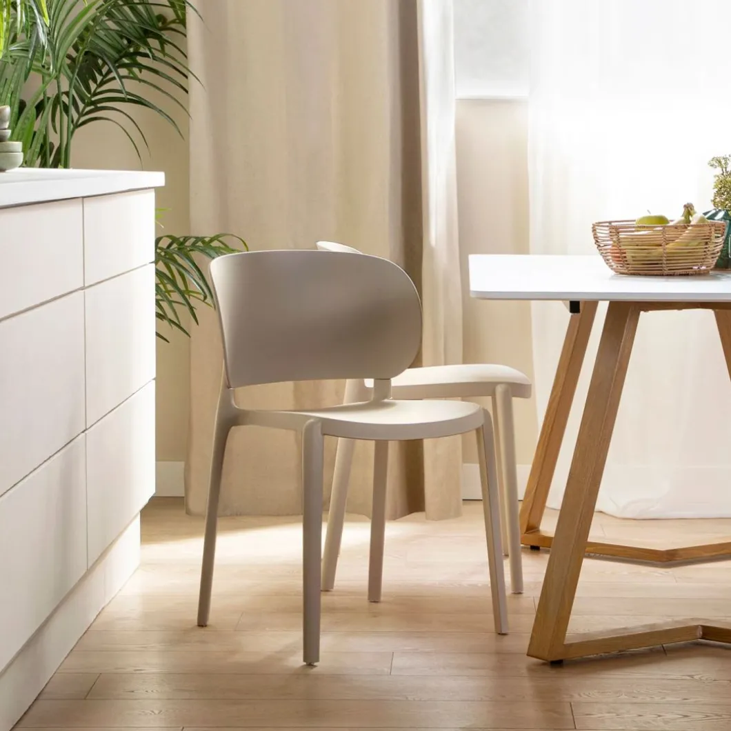 ¡Aprovéchate de este pack! La silla de comedor Jana es un diseño elegante con líneas estilizadas de aire vintage fabricada en polipropileno, por lo que es una opción perfecta para colocar allá donde la necesites, ya sea en tu cocina, como silla de escritorio o en tu jardín o balcón. Elige cualquiera de los 3 colores disponibles en nuestra web y combínalas a tu gusto. Para mayor durabilidad de la silla, aconsejamos que se evite la exposición de la misma a fenómenos meteorológicos.
