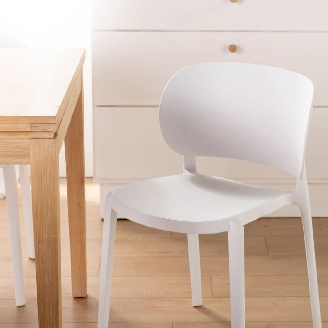 ¡Aprovéchate de este pack! La silla de comedor Jana es un diseño elegante con líneas estilizadas de aire vintage fabricada en polipropileno, por lo que es una opción perfecta para colocar allá donde la necesites, ya sea en tu cocina, como silla de escritorio o en tu jardín o balcón. Elige cualquiera de los 3 colores disponibles en nuestra web y combínalas a tu gusto. Para mayor durabilidad de la silla, aconsejamos que se evite la exposición de la misma a fenómenos meteorológicos.
