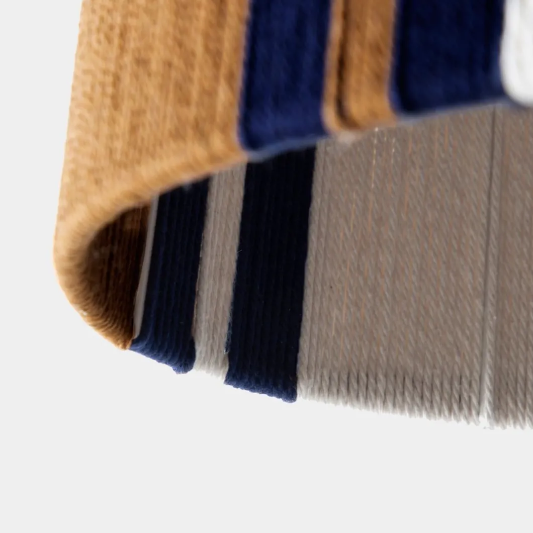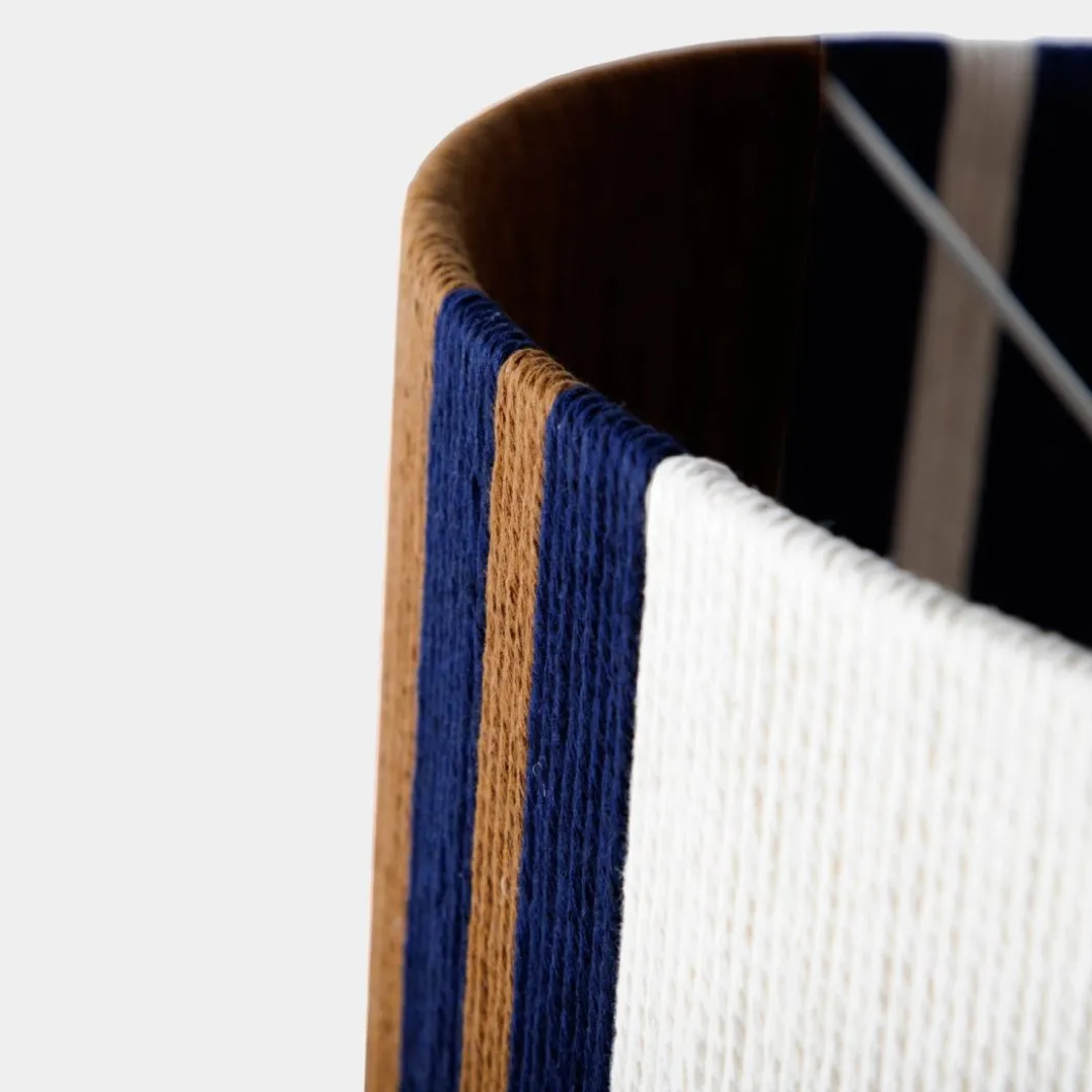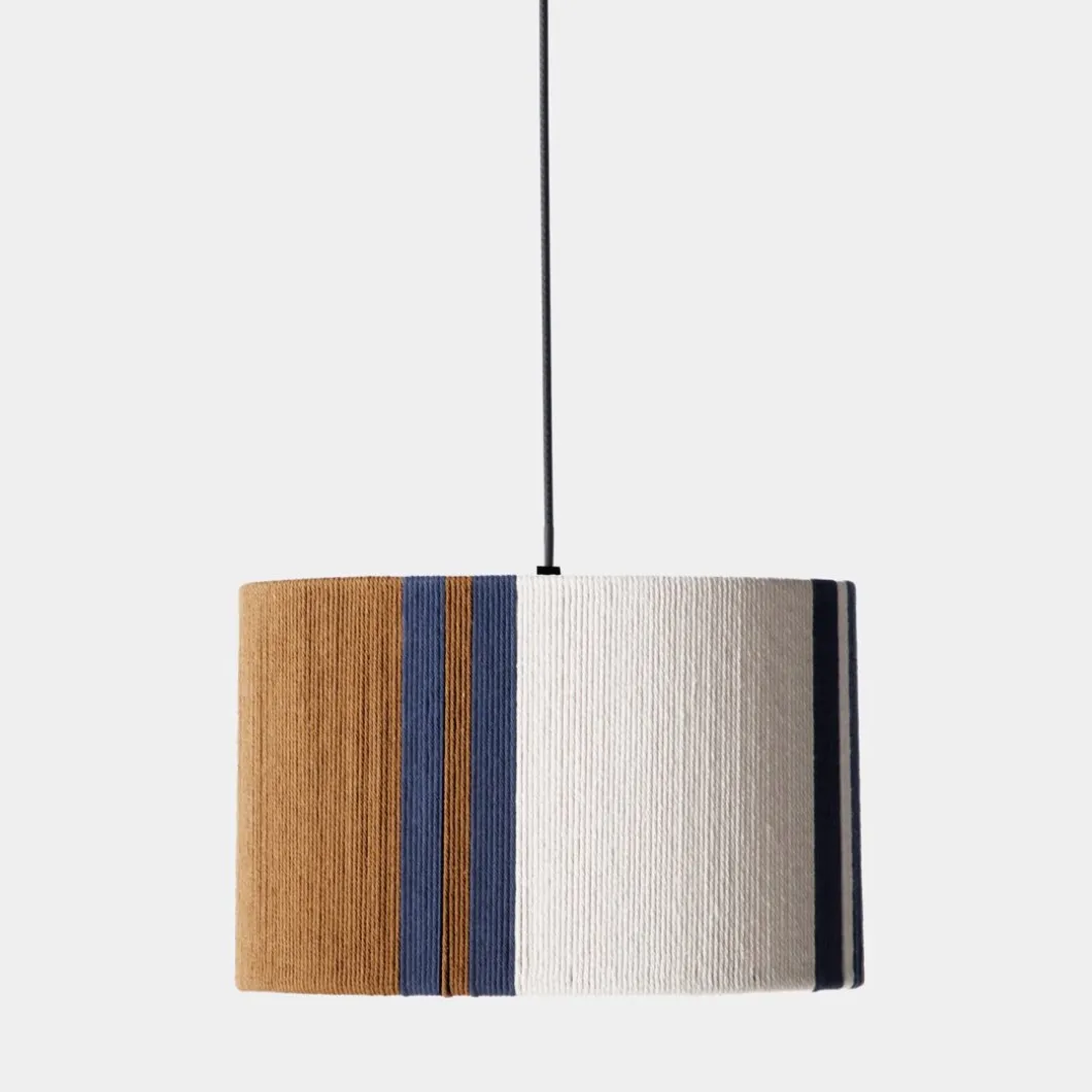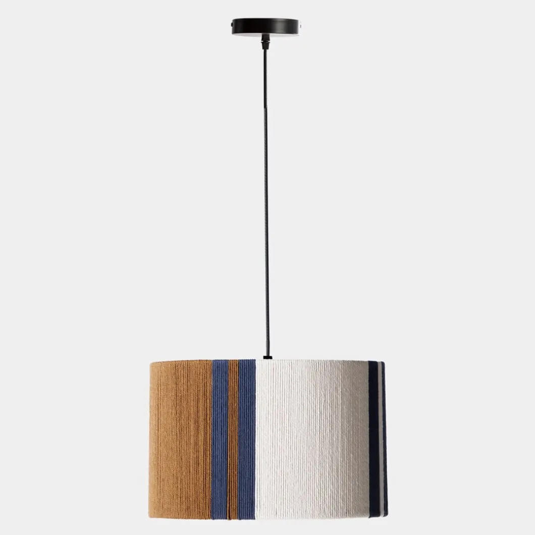 La lámpara de techo Kane con pantalla de cuerda de papel aporta un toque artístico y acogedor a cualquier espacio. Su diseño combina los cálidos tonos de teja con el blanco y un elegante azul oscuro casi negro, creando un contraste atractivo que se adapta a diversas decoraciones, desde lo contemporáneo hasta lo bohemio. No incluye bombilla.