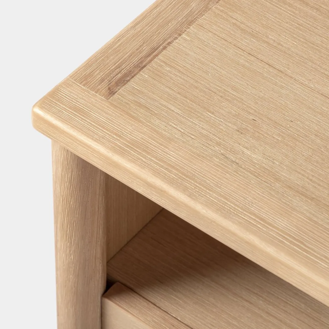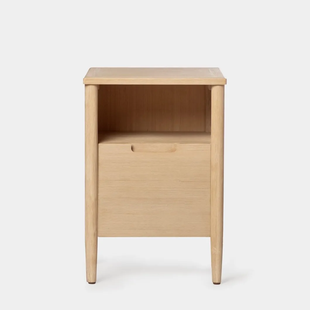 La mesita de noche en chapa de pino y madera de abedul Kenan es una pieza atemporal y funcional perfecta para el dormitorio. Cuenta con un amplio cajón y un hueco en el que podrás guardar tus objetos personales y mantenerlos al alcance de tu mano durante la noche. Su diseño sencillo y atemporal encaja en cualquier estilo decorativo. Disponible en varios acabados, escoge el que más te guste.