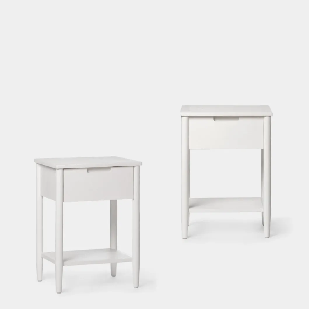 ¡Aprovéchate de este pack! La mesita de noche Kenan en chapa de pino y madera de abedul es la pieza ideal para completar la decoración de tu dormitorio. Cuenta con un cajón y un práctico estante inferior en el que podrás dejar todo lo que quieras tener a mano. Su estilo minimalista se adapta con armonía a una variedad de estilos decorativos y aporta luminosidad y orden al dormitorio. También está disponible en blanco. ¡Elige el acabado que mejor se ajuste a tus preferencias!