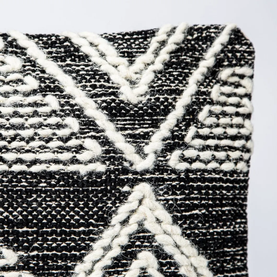El cojín para sofá Kude dará un toque de naturalidad a tu decoración gracias a su tejido bordado con motivos estampados en blanco y negro. Este cojín será tan popular en una decoración de estilo étnico como en una decoración de estilo escandinavo. Te aconsejamos combinar la colección de cojines Kude en sus dos tamaños y crear una confortable composición en tu sofá. Incluye funda y relleno.