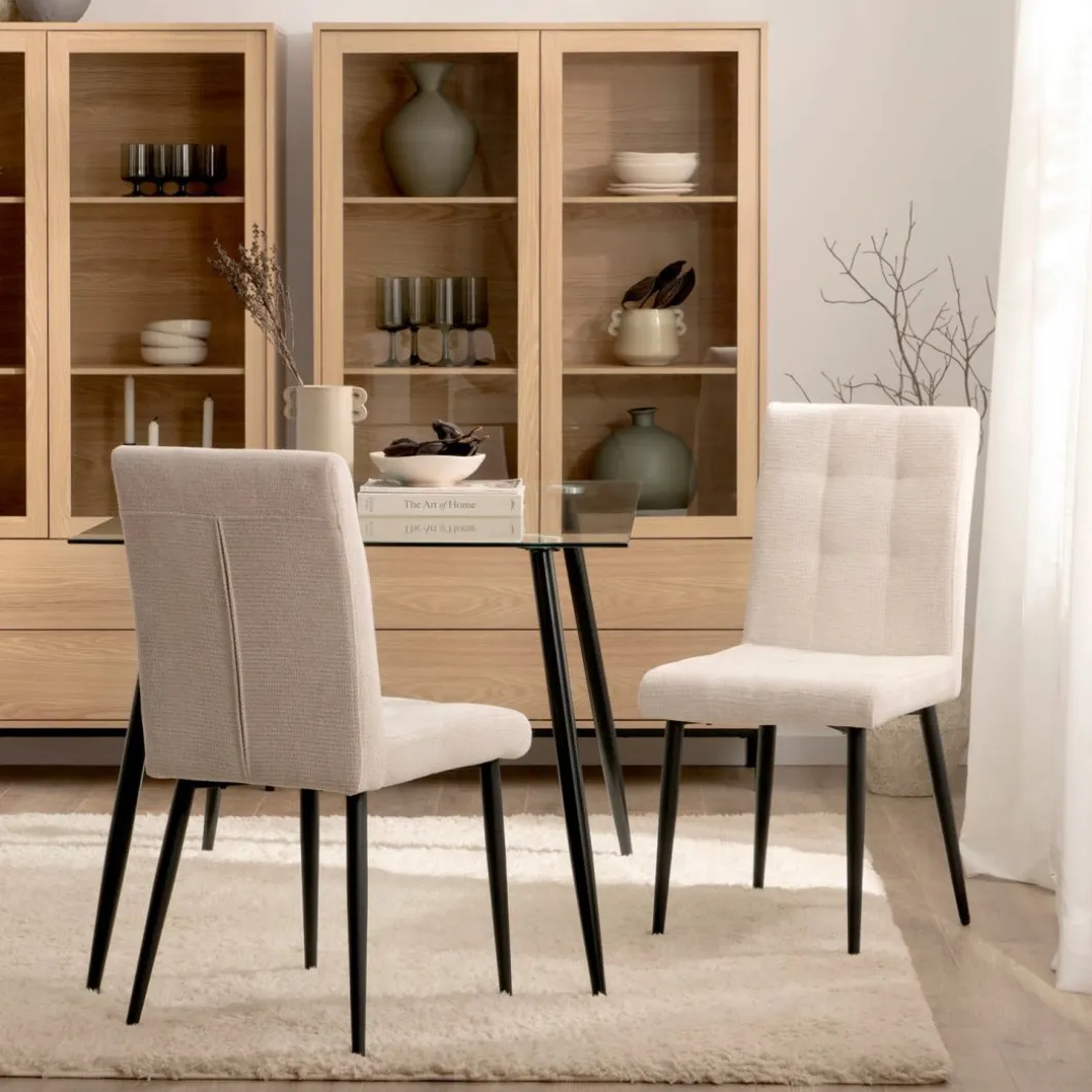 La silla de comedor tapizada Leia en beige con pata negra es ideal para quienes buscan combinar estilo, confort y sofisticación en su comedor. Con su diseño elegante y el detalle de capitoné en el respaldo, la silla Leia será un complemento perfecto para reuniones familiares y cenas formales. Disponible en varios acabados, escoge el que mejor encaje con tu estilo.