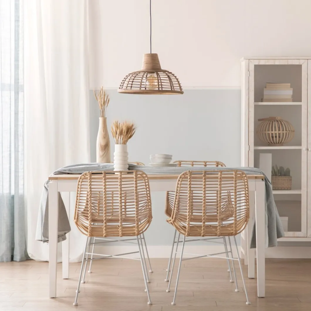 La silla de comedor en ratán natural con pata blanca Lui aportará confort y calidez a tu hogar. Está formada por una estructura metálica y un asiento elaborado de forma artesanal con ratán natural. Por ello, puede presentar irregularidades propias de su elaboración y ligeras variaciones en la tonalidad respecto al color que se muestra en la imagen.
