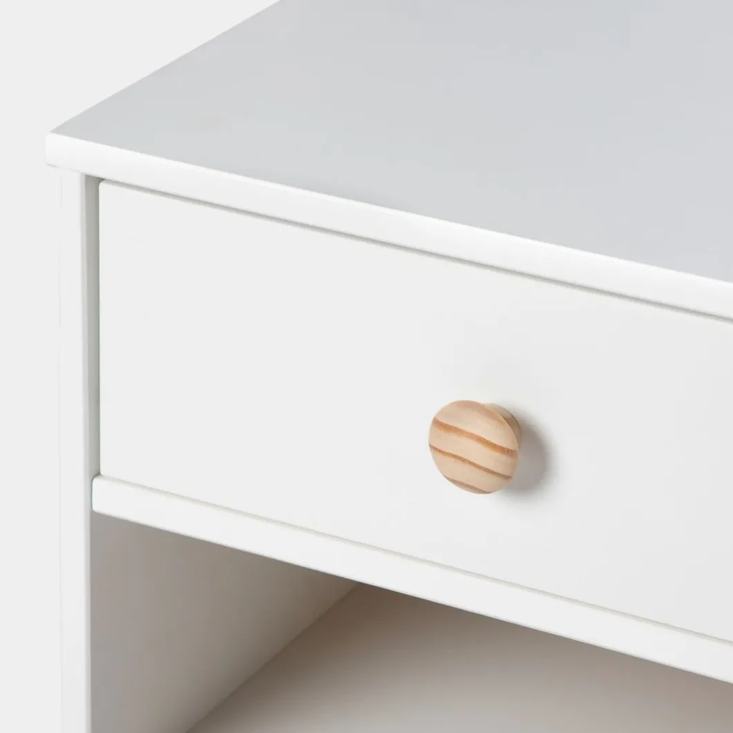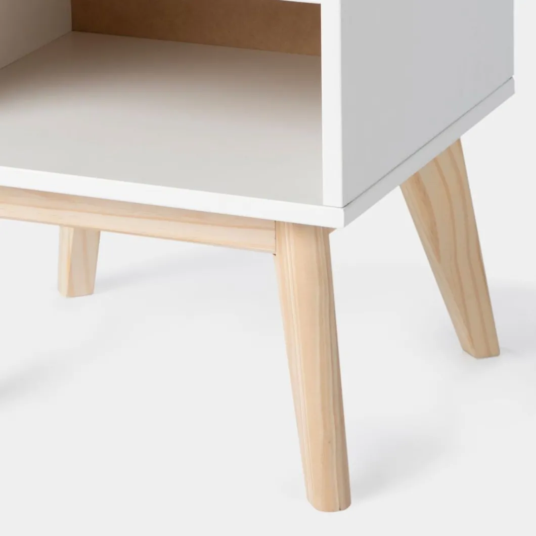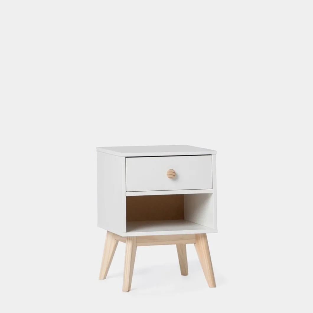 La mesita de noche lacada en blanco Luke de estilo nórdico encaja en cualquier dormitorio. Cuenta con un cajón de almacenaje y con un estante inferior en el que podrás dejar todo lo que quieras tener a mano. Está disponible en varios acabados, escoge el que más te guste.