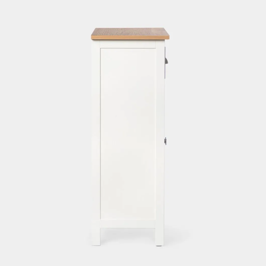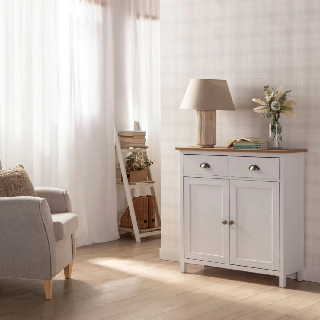 El mueble auxiliar de estilo contemporáneo Marais es un mueble de medidas contenidas que permite conseguir espacio de almacenaje extra en el hogar. Cuenta con dos cajones y dos puertas en los que podrás almacenar tu menaje del hogar. Los cajones cuentan con un sistema de cierre con retención que evita que se den golpes al cerrar e impide la apertura involuntaria. Para mayor estabilidad del mueble, aconsejamos su anclaje a la pared. Combínalo con otras piezas de la colección y consigue el look completo.