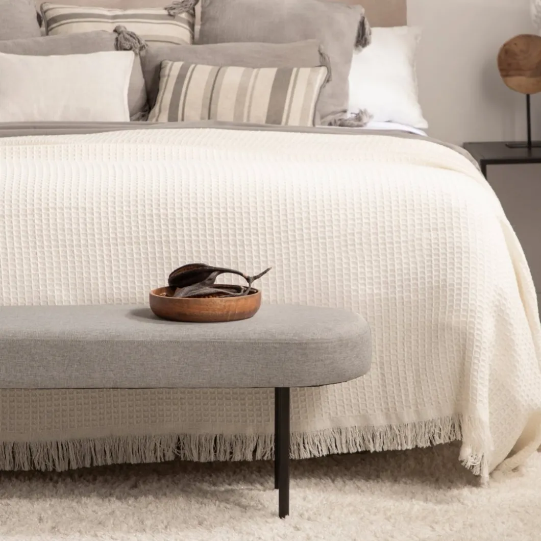 Añade funcionalidad y estilo a tu hogar con el banco tapizado en gris Mena. Su diseño moderno y minimalista se adapta a una variedad de estilos de decoración. Se puede utilizar tanto como de pie de cama o como banqueta en la zona de entrada. Disponible en varios acabados, escoge el que más te guste.