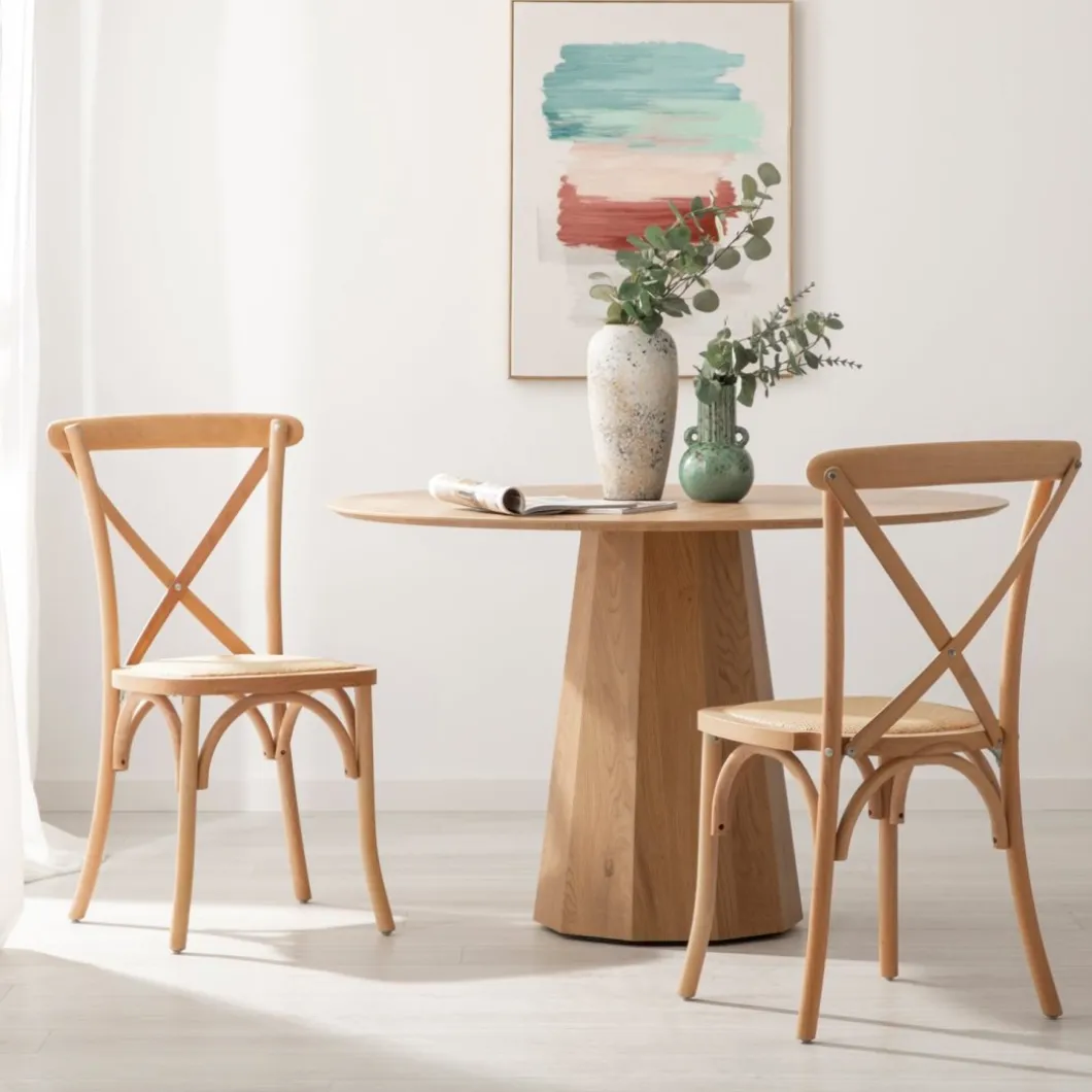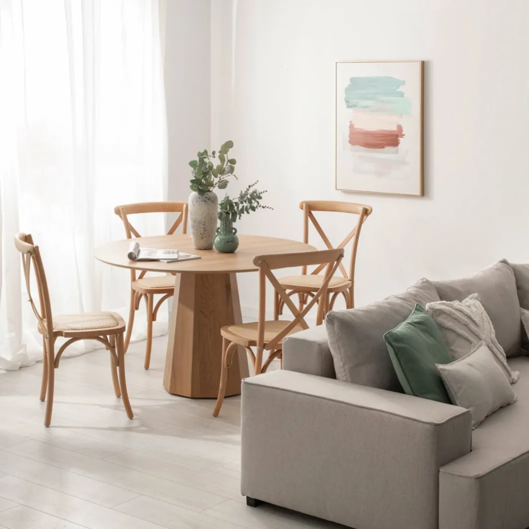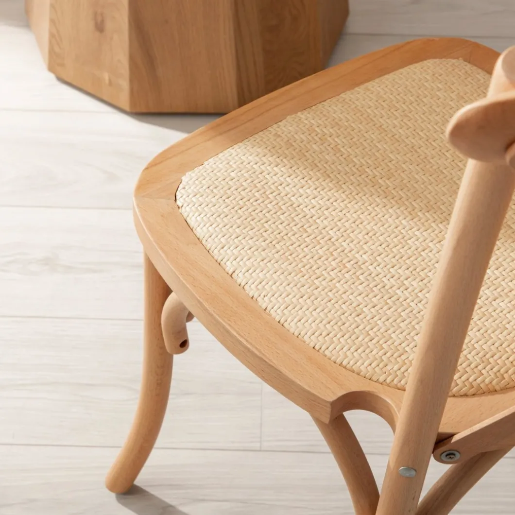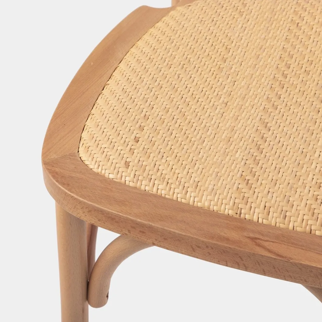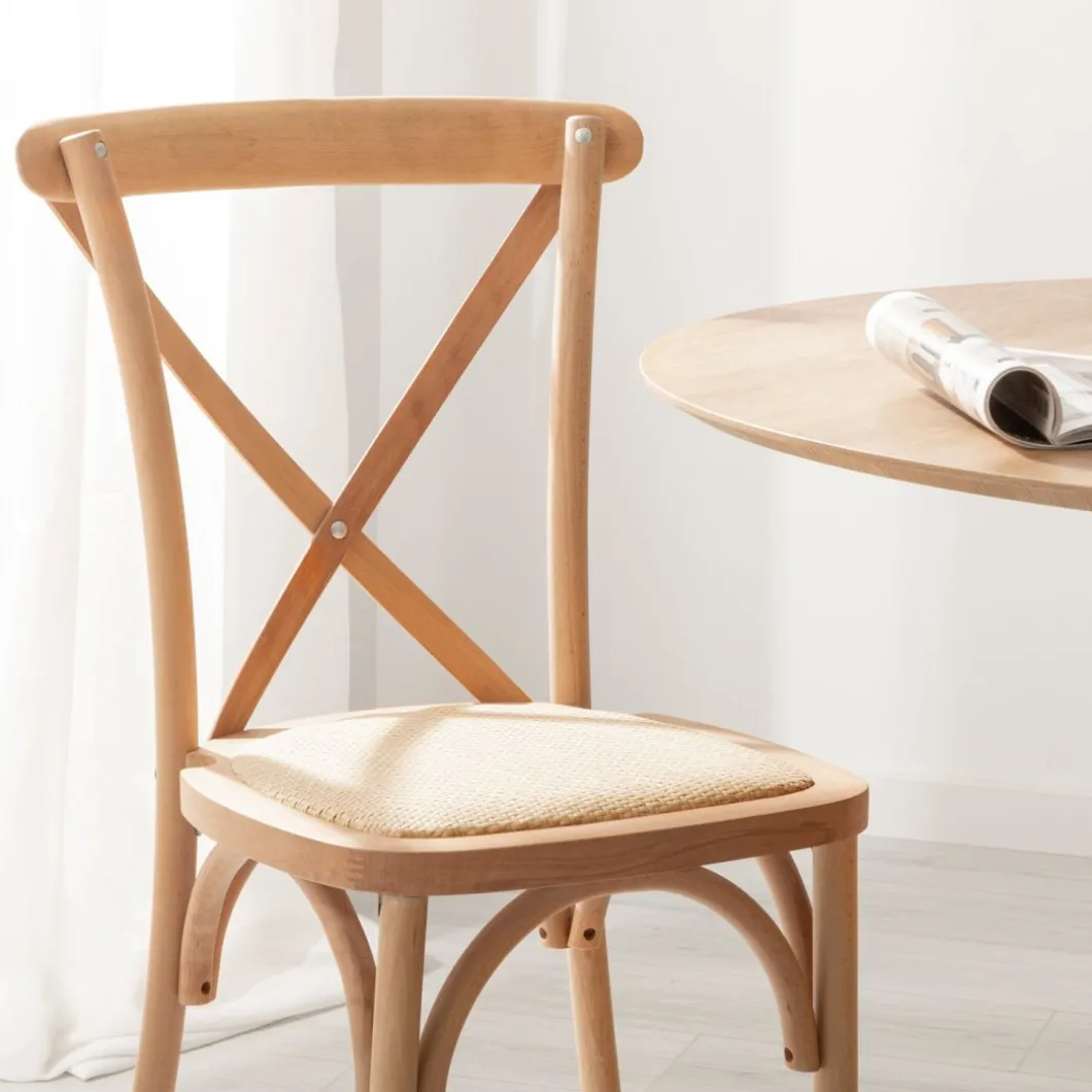 Crea un ambente relajado y acogedor con la silla de comedor Mila. Esta silla combina a la perfección la robustez de la madera de haya con la esencia tradicional y natural del ratán. Además,su diseño apilable la convierte en una elección ideal tanto para hogares con espacios reducidos como para establecimientos de hostelería que buscan combinar funcionalidad y estilo.