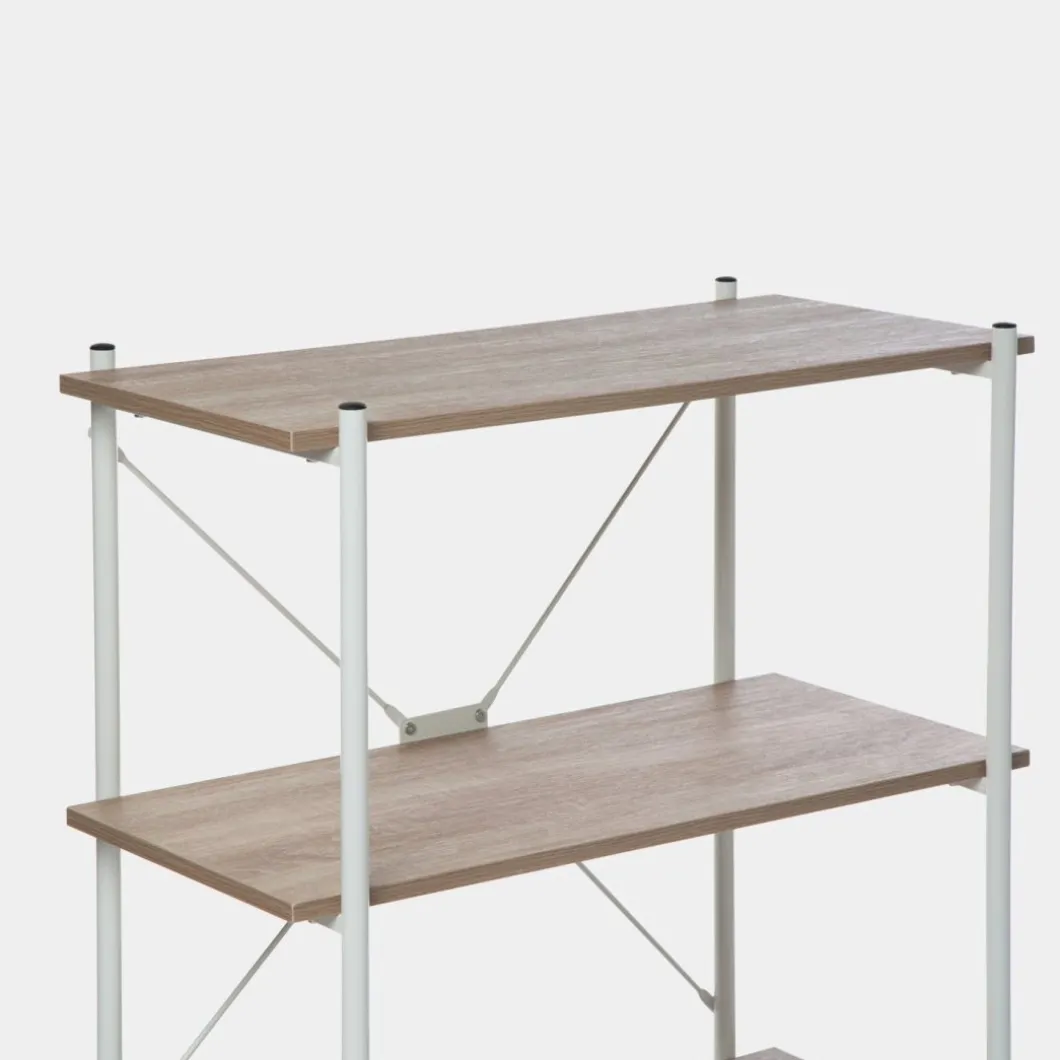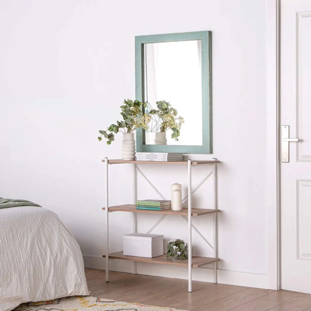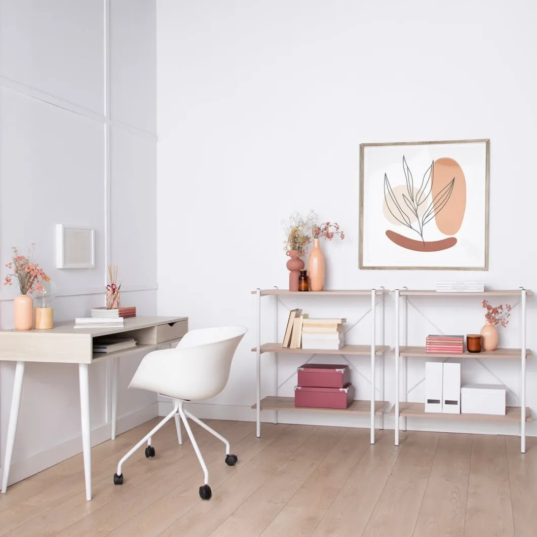 La estantería Milan se caracteriza por su estilo industrial. Lo amantes de este estilo y del orden encontrarán en esta pieza todo lo que buscan para organizar y almacenar. Combina estantes en madera color natural y estructura metálica blanca de una forma estética. Es la biblioteca perfecta para un dormitorio, despacho, salón, comedor e incluso recibidor. Su diseño y tamaño sencillo la hacen multifuncional.Para mayor estabilidad del mueble, aconsejamos su anclaje a la pared.