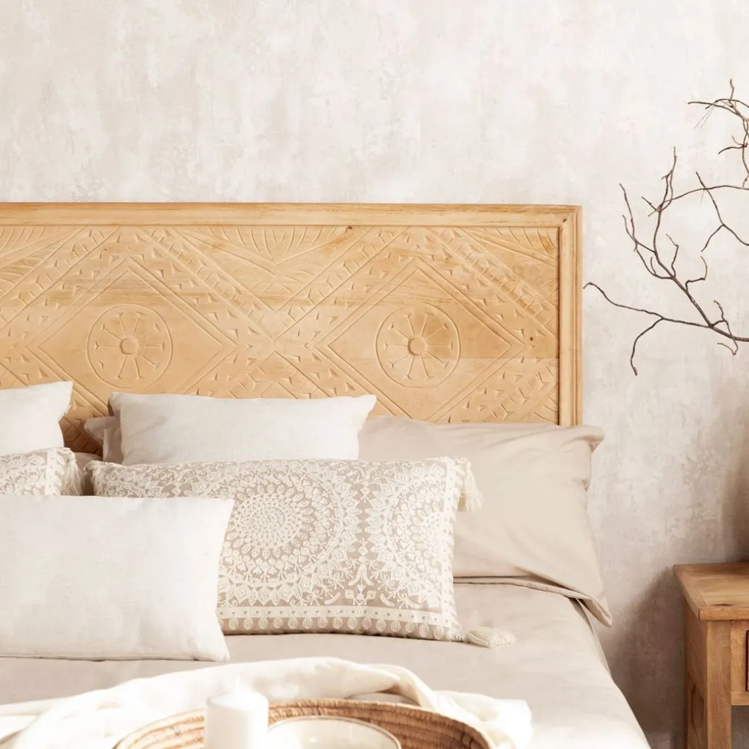 Dale un toque cálido y natural a tu dormitorio con el cabecero Nala. Fabricado artesanalmente en madera de mango. El color y la veta de la madera puede variar ligeramente, lo que hace que cada pieza sea única. Se puede utilizar con camas de 135, 150 y 160 cm. La tornillería no está incluida.