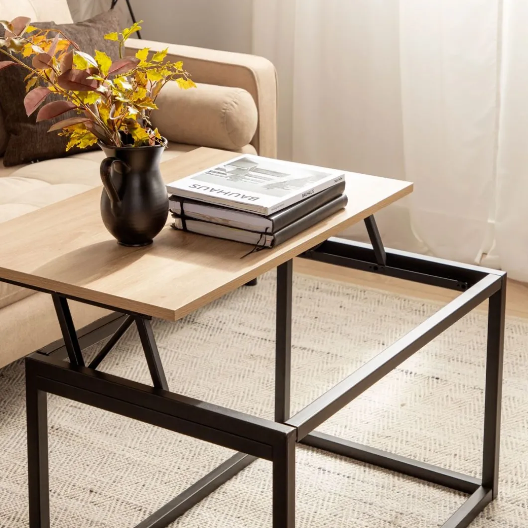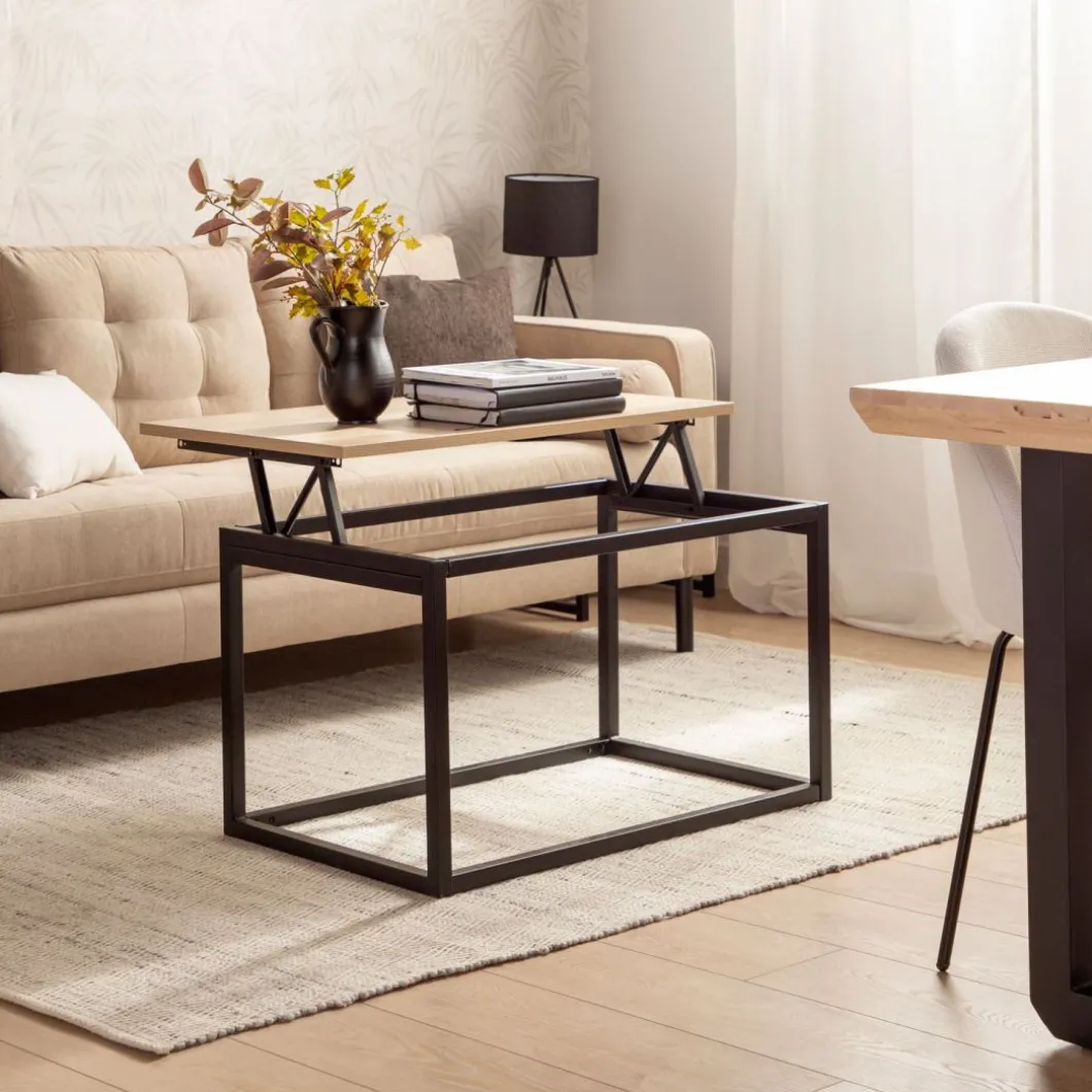 Consigue ese estilo industrial que está tan de moda con la mesa de centro elevable Navan. Se trata de una pieza de líneas rectas y puras que encaja en cualquier estilo decorativo. Gracias a su sobre elevable podrás trabajar con tu ordenador o comer cómodamente desde el sofá. Está disponible en varios acabados, escoge el que más te guste