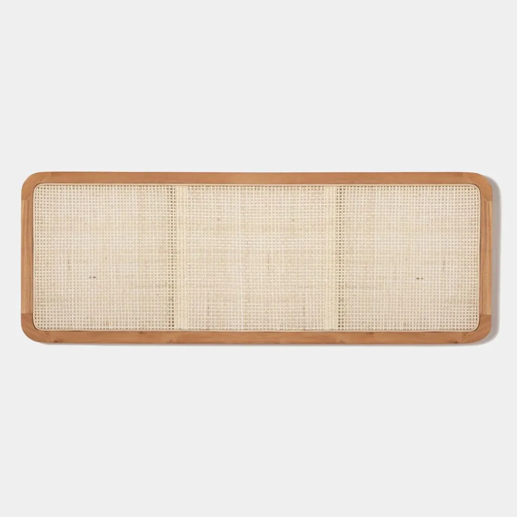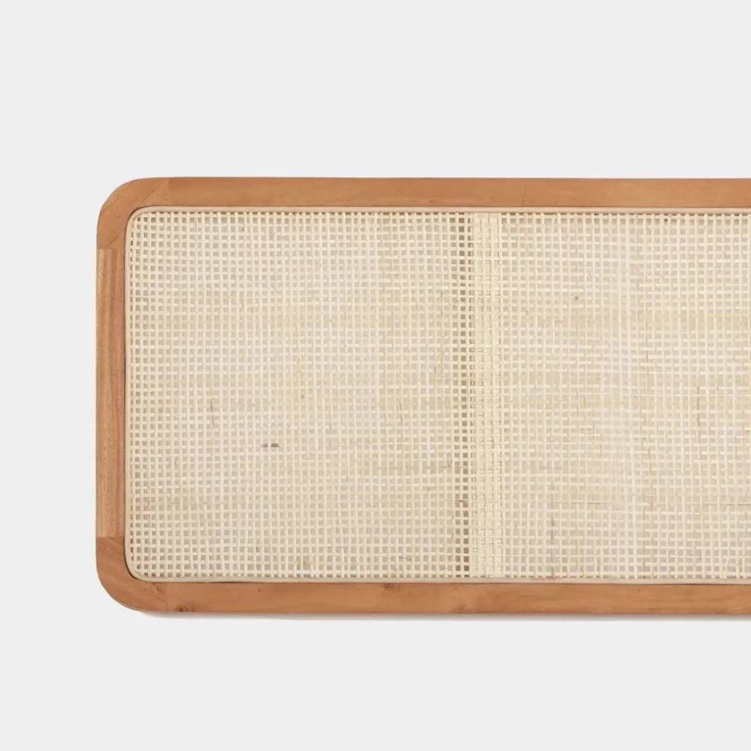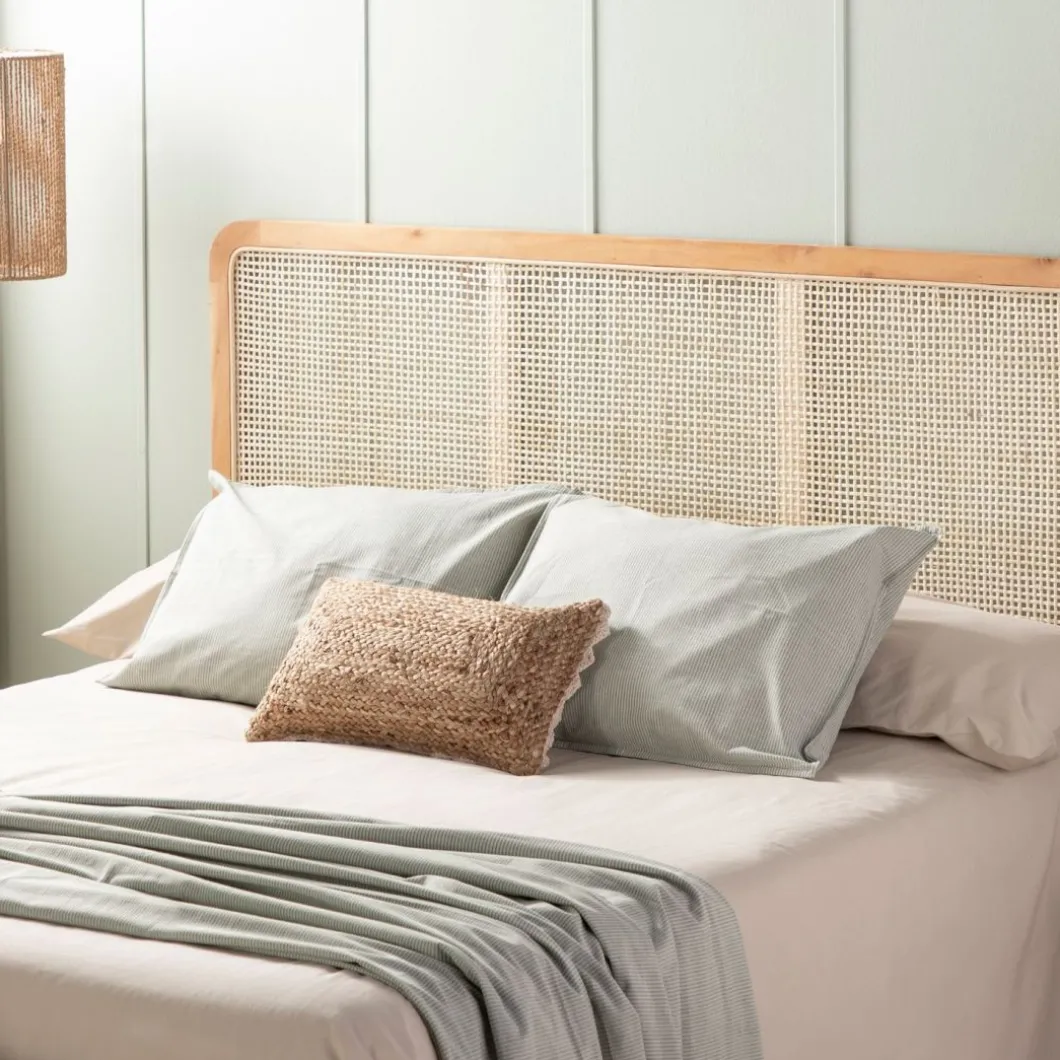 El cabecero de cama Nera en madera maciza y ratán natural aportará calidez y calma a tu dormitorio. El ratán ha sido trenzado a mano, por lo que puede presentar alguna irregularidad propia de la naturaleza del material y del proceso de fabricación artesanal. Se puede utilizar en camas de 135, 150 y 160. Requiere anclaje a pared. La tornillería no está incluida.