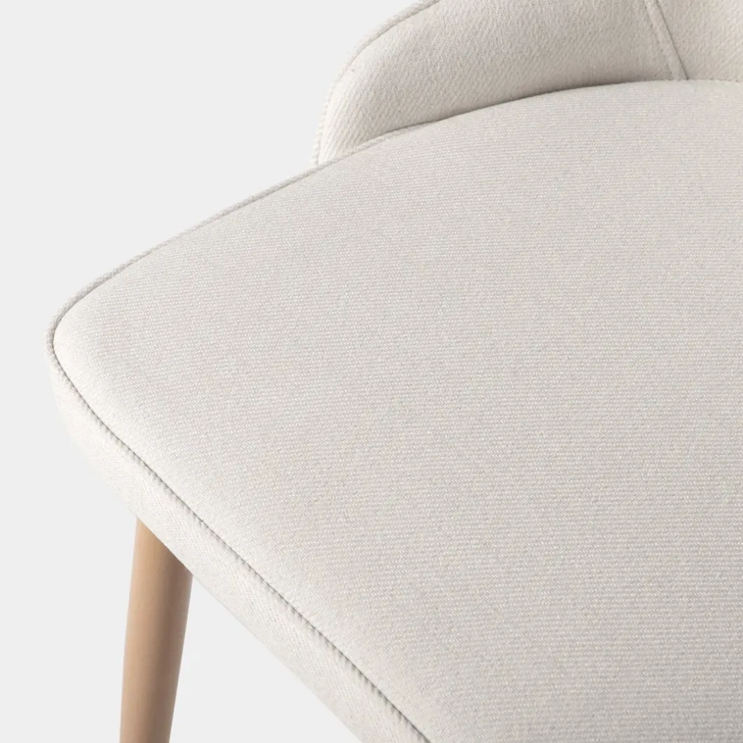Aporta un toque de elegancia y confort a tu comedor con la silla Nika. Esta pieza combina un tapizado suave en color beige con patas metálicas efecto madera, creando un diseño atemporal y sofisticado que complementa cualquier estilo de decoración. Disponible en varios acabados, escoge el que mejor encaje con tu estilo.