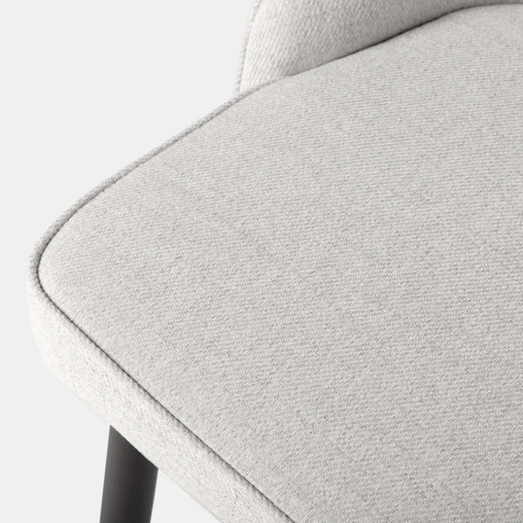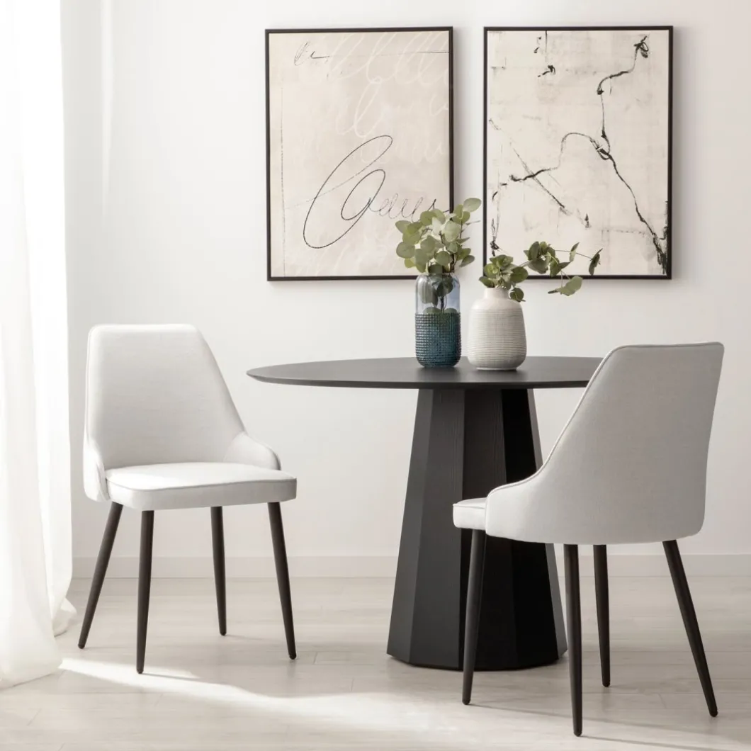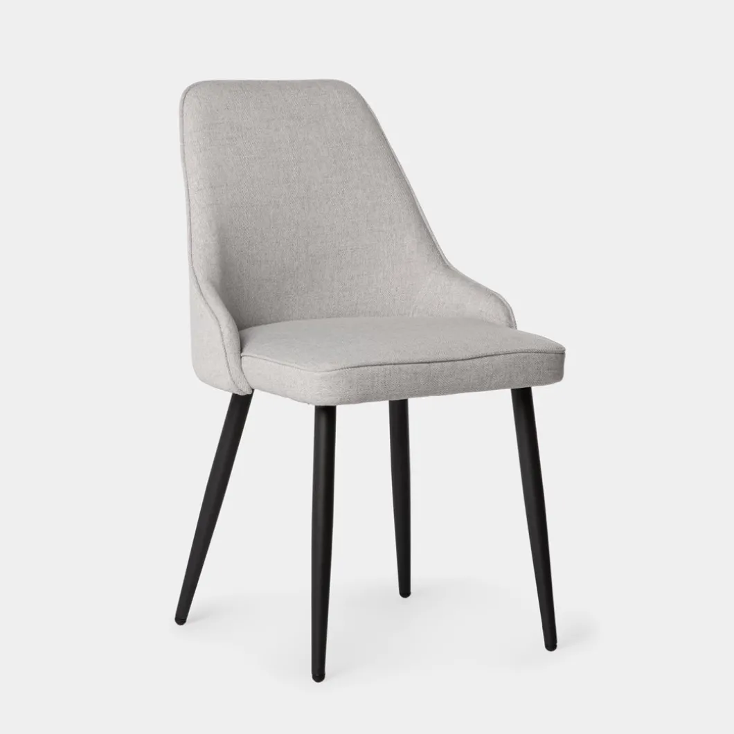 Aporta un toque de elegancia y confort a tu comedor con la silla Nika. Esta pieza combina un tapizado suave en color gris con patas metálicas negras, creando un diseño atemporal y sofisticado que complementa cualquier estilo de decoración. Disponible en varios acabados, escoge el que mejor encaje con tu estilo.