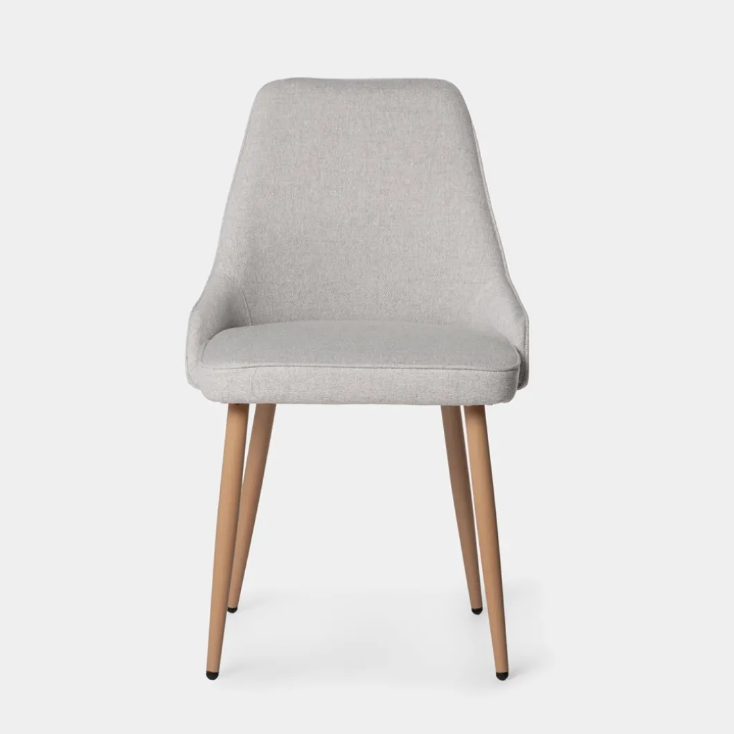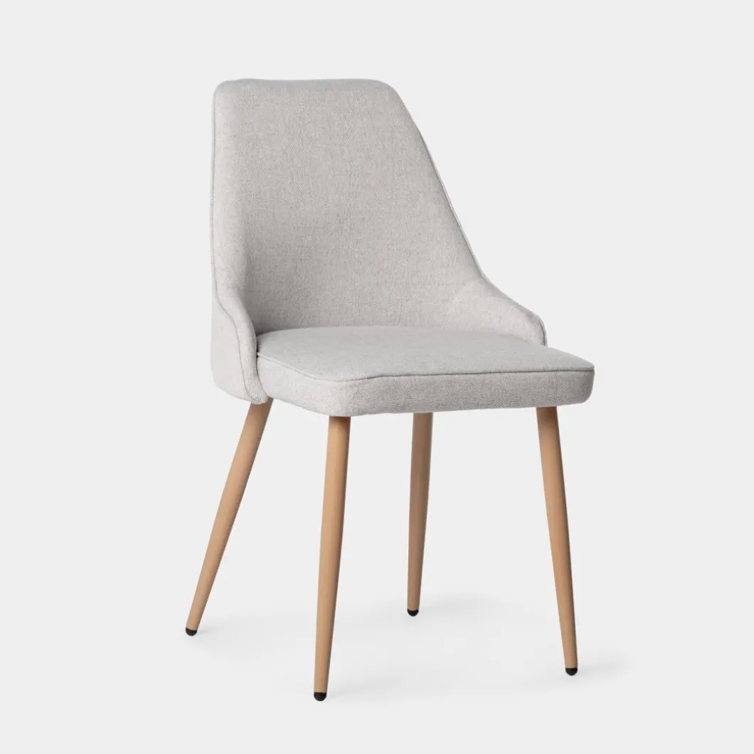 Aporta un toque de elegancia y confort a tu comedor con la silla Nika. Esta pieza combina un tapizado suave en color gris con patas metálicas efecto madera, creando un diseño atemporal y sofisticado que complementa cualquier estilo de decoración. Disponible en varios acabados, escoge el que mejor encaje con tu estilo.