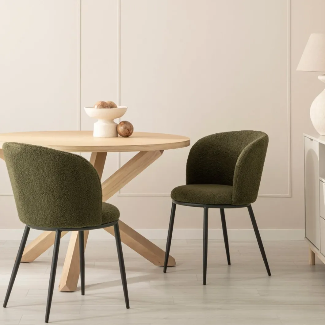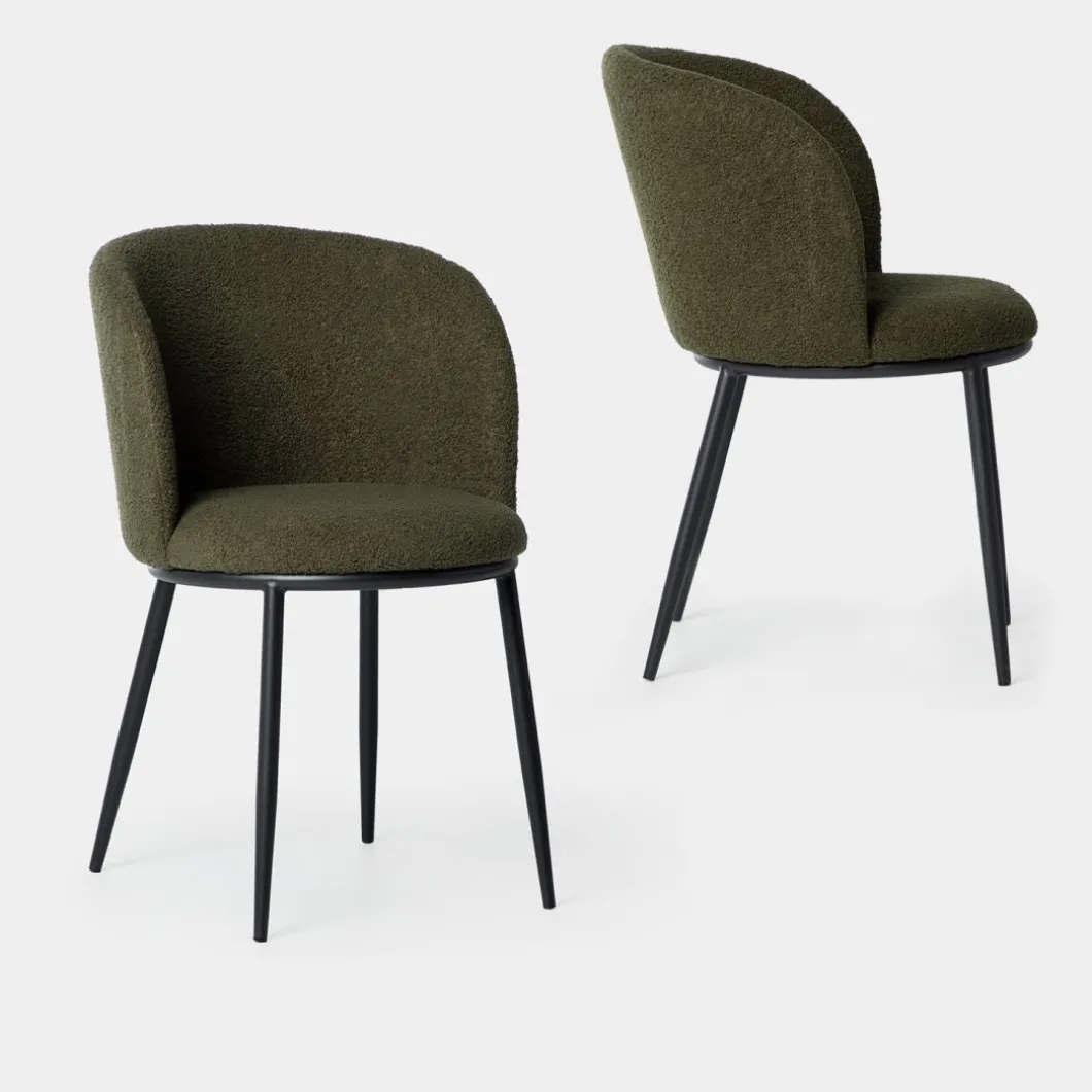 ¡Aprovéchate de este pack! La silla de comedor Nolan tapizada en borreguito verde con pata metálica negra es la pieza ideal para completar la decoración de tu hogar. Su respaldo curvado envuelve a la perfección la espalda y aporta una gran sensación de confort y comodidad. Su tapizado en borreguito derrocha tendencia y estilo.