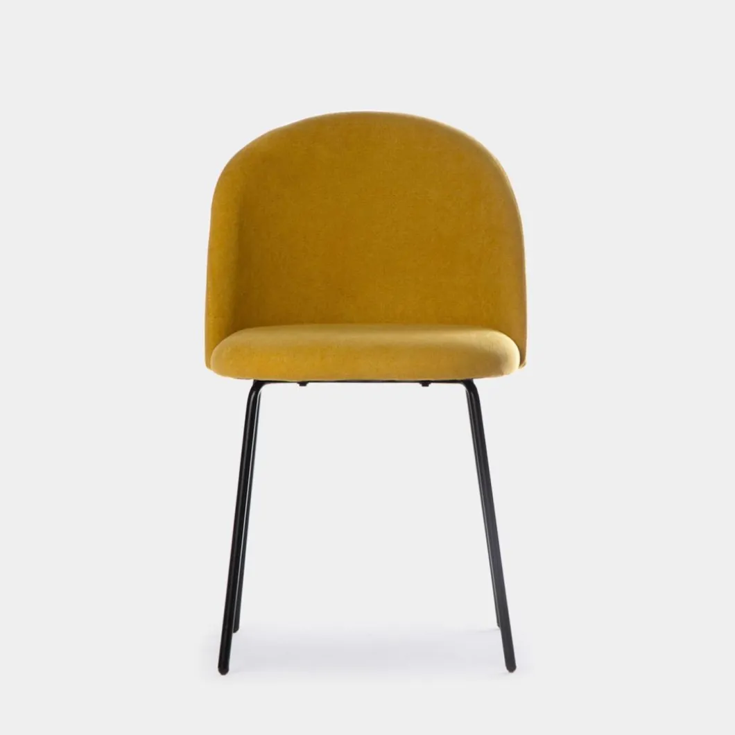 ¡Aprovéchate de este pack! La silla de comedor Olivia en tapizado de poliéster mostaza y pata metálica negra tiene un diseño elegante y sencillo inspirado en los años 50. Su respaldo corto y redondeado unido al diseño de sus patas cónicas despuntadas recuerdan a esos modelos de sillería sofisticados y funcionales adaptables a cualquier estilo. Elige entre una de nuestras 3 tonalidades de tapizados disponibles y haz de esta silla un elemento distintivo de tu salón, comedor o escritorio.