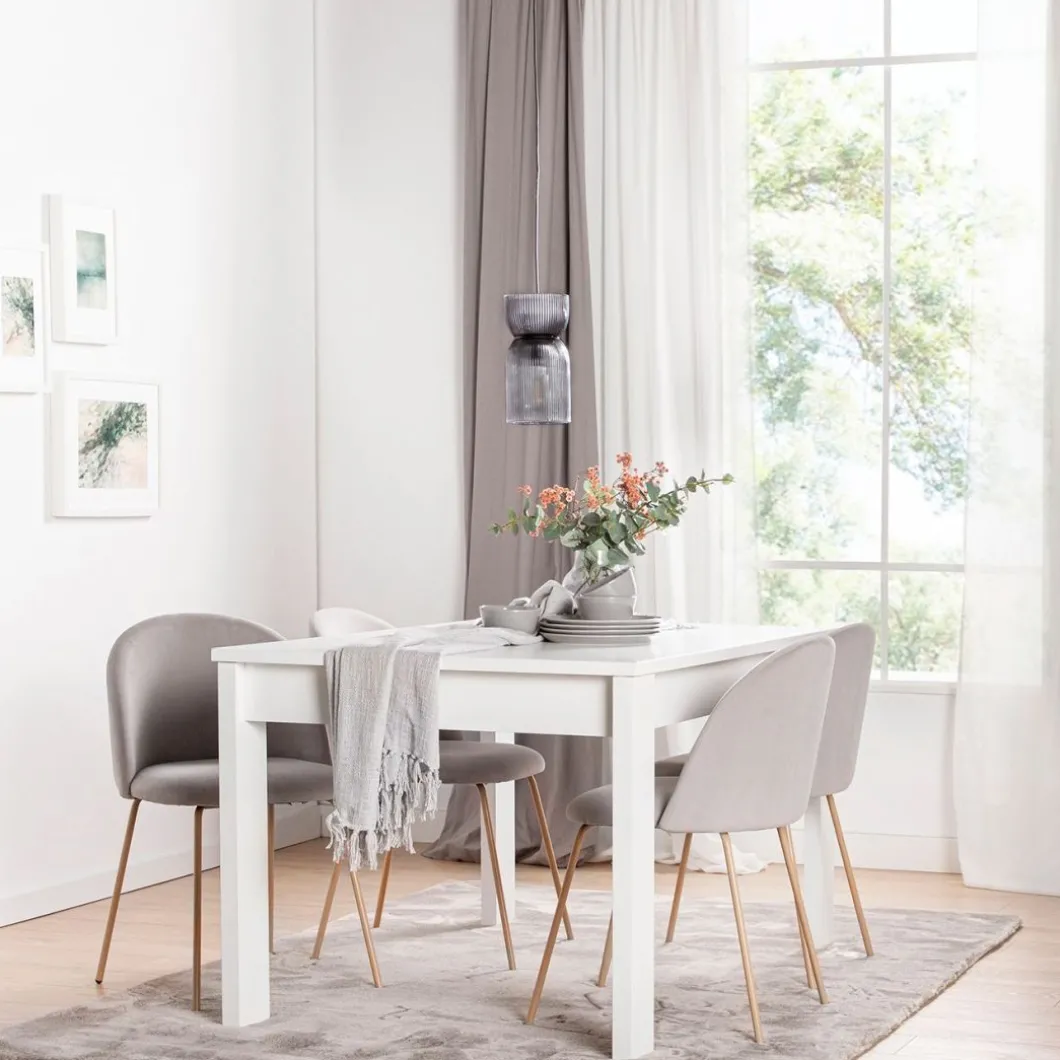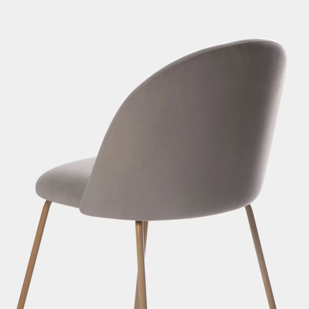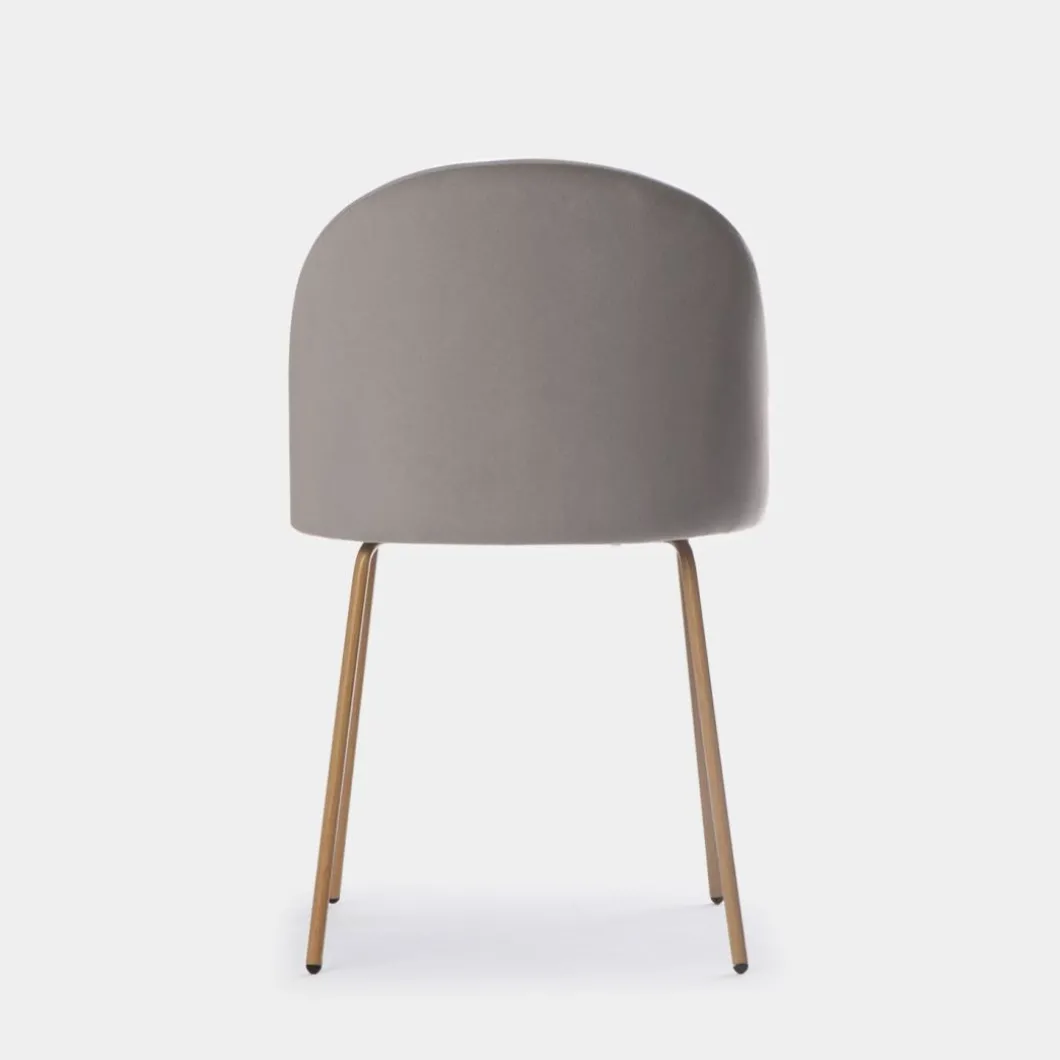 La silla de comedor Olivia en tapizado de terciopelo y pata metálica en color natural tiene un diseño elegante y sencillo inspirado en los años 50. Su respaldo corto y redondeado unido al diseño de sus patas cónicas despuntadas recuerdan a esos modelos de sillería sofisticados y funcionales adaptables a cualquier estilo. Elige entre una de nuestras 3 tonalidades de tapizados disponibles y haz de esta silla un elemento distintivo de tu salón o comedor.