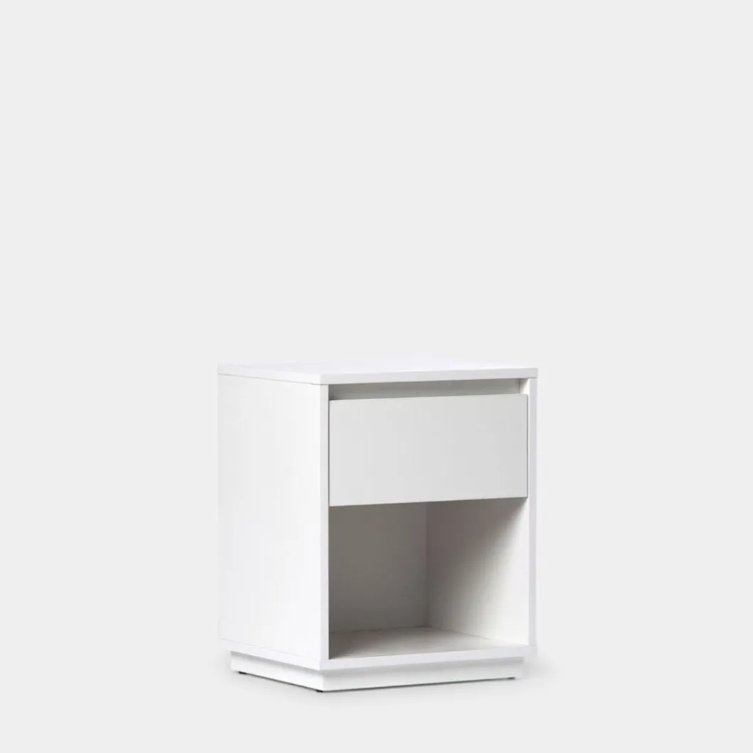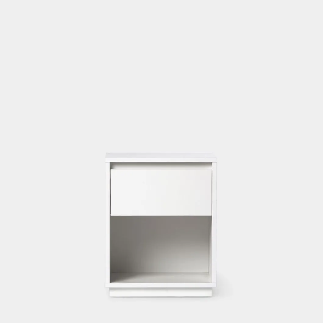 La mesita de noche blanca Oslo cuenta con un cajón y un espacio abierto que te permitirá guardar objetos de mayor volumen y que quieres tener en el dormitorio. Su diseño nórdico convierte a esta mesita en una de las apuestas seguras puesto que el estilo escandinavo nunca falla. También está disponible en otros colores.