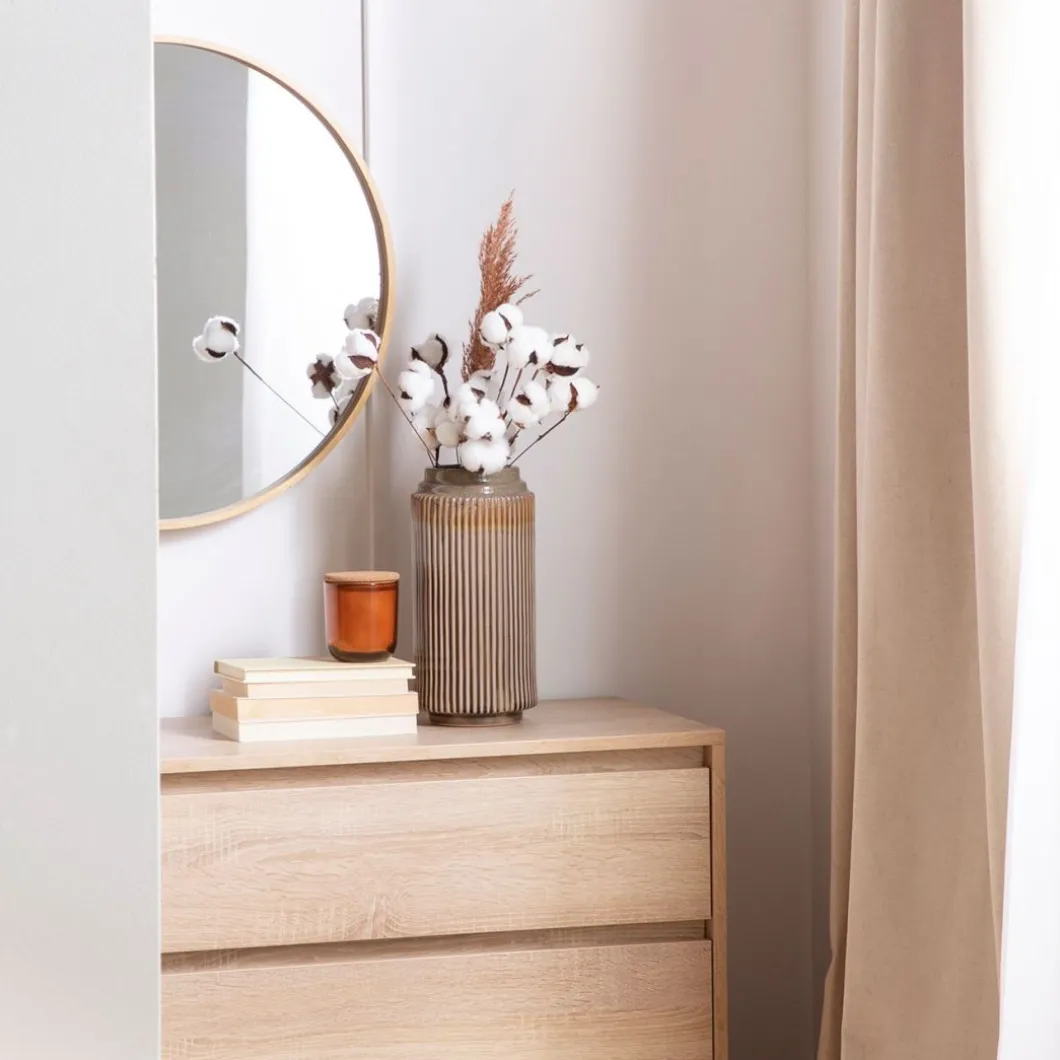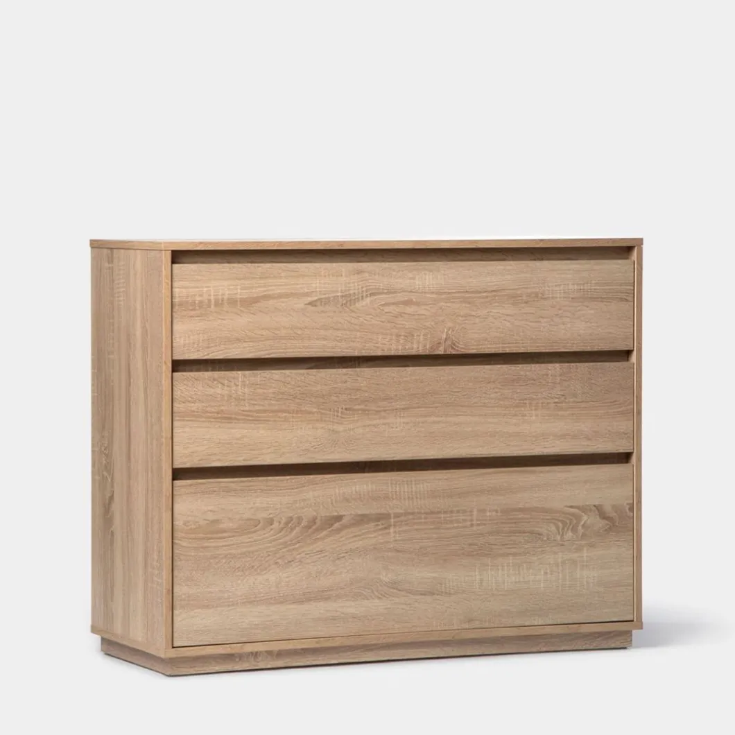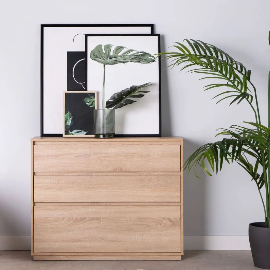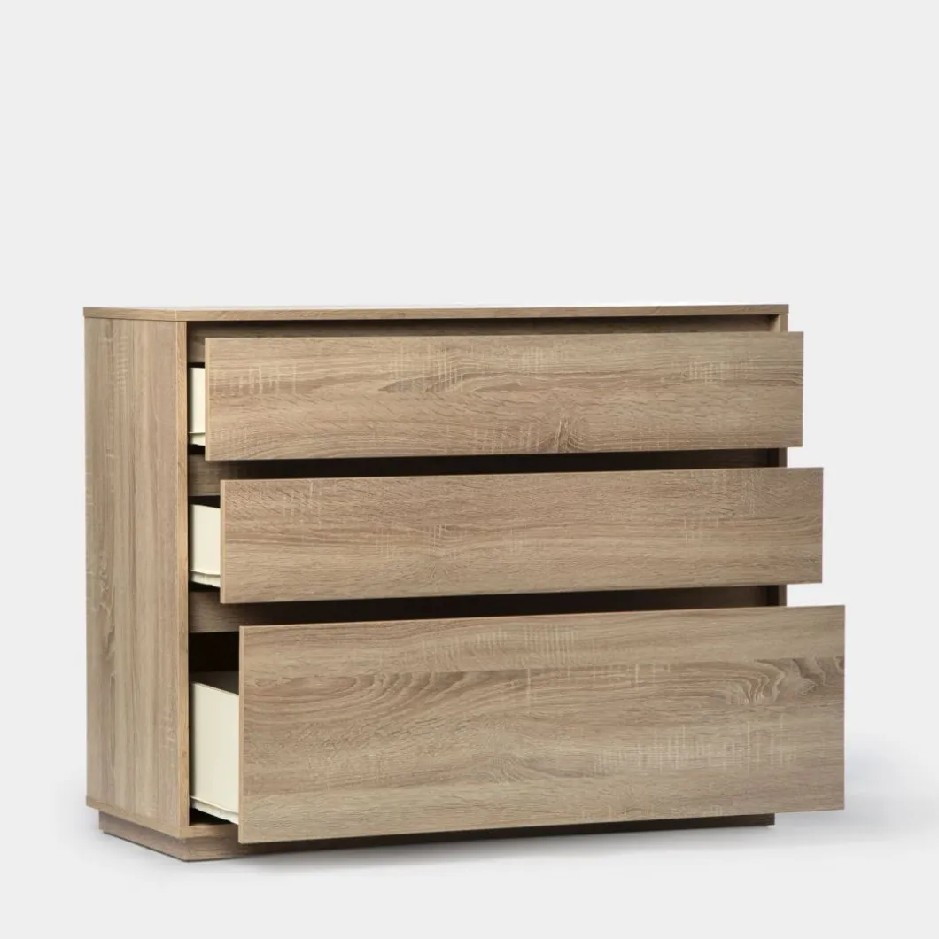La cómoda Oslo tiene un diseño de líneas sencillas hace que sea un mueble que combine con todo. De diseño nórdico, esta cómoda cuenta con tres cajones, siendo el inferior de ellos más grande para que puedas guardar aquello que ocupa mayor volumen. Con esta cómoda mantendrás el orden en tu dormitorio. Está disponible en varios colores. Para mayor estabilidad, aconsejamos su anclaje a la pared.