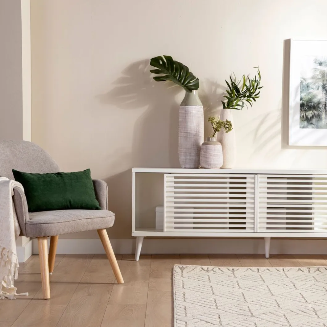 El mueble tv Palm es una pieza que respira tendencia. Además de bonito , este tv de puertas correderas es muy práctico ya que dispone de suficiente espacio para que tengas todo bien organizado. Lo encuentras disponible en dos acabados y en dos medidas de manera que te será sencillo escoger el que más se ajuste a tus necesidades. Si quieres dar un toque nórdico a tu salón este mueble es perfecto.