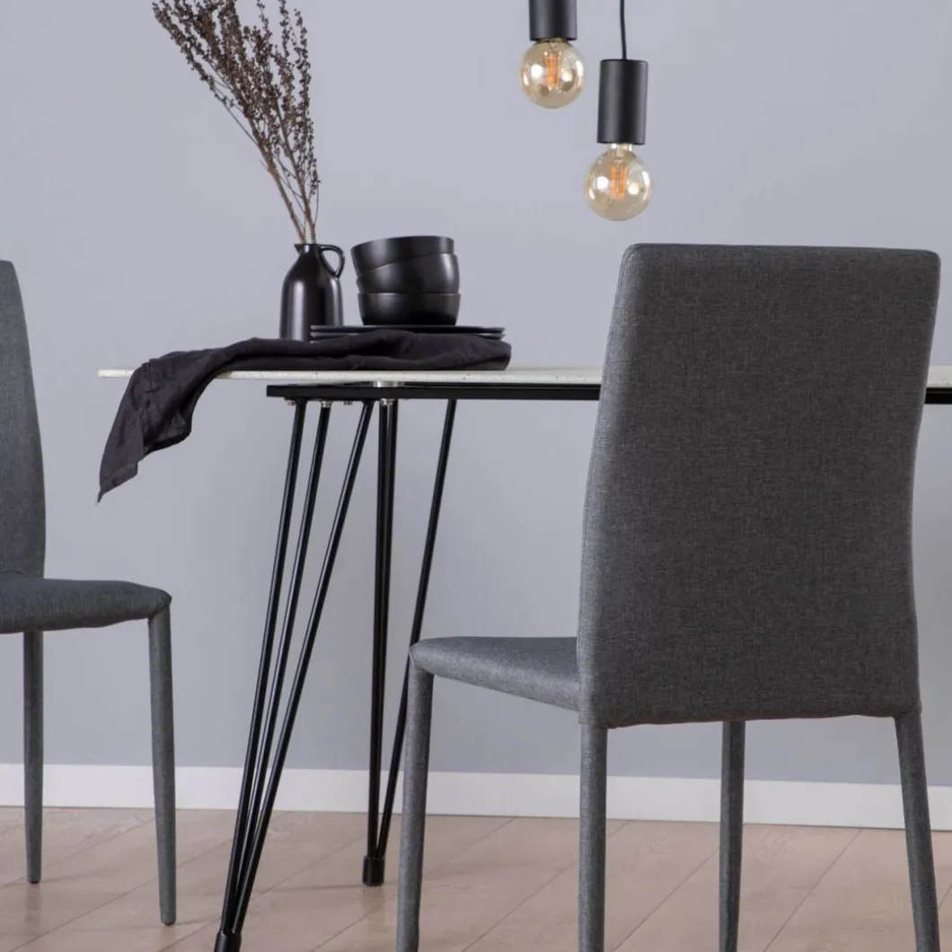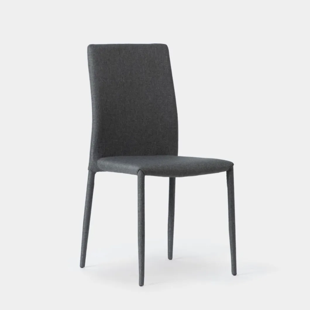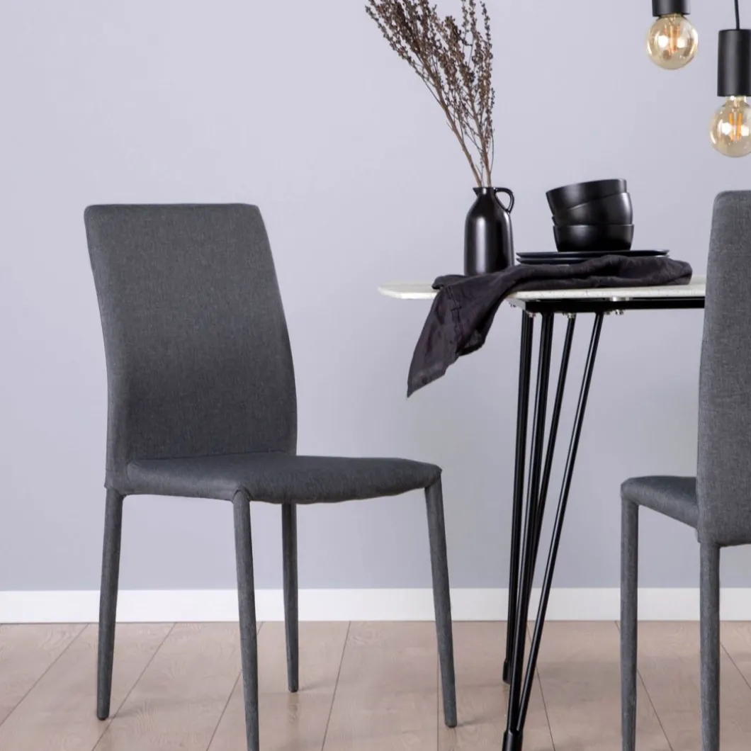 La silla de comedor Quinn en gris oscuro con pata metálica tapizada en el mismo color aportará un aire vanguardista a tu decoración. Su diseño moderno y elegante hace de esta silla un elemento esencial para llenar de vida cualquier salón o comedor. Elige entre una de las 2 combinaciones de colores que tienes disponibles en nuestra web.