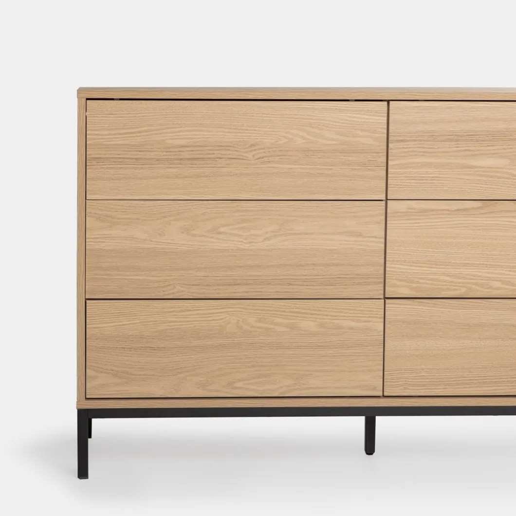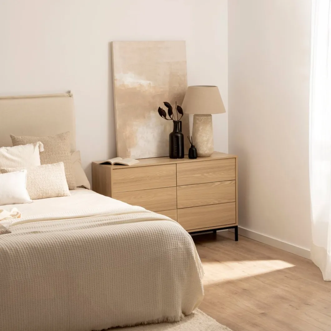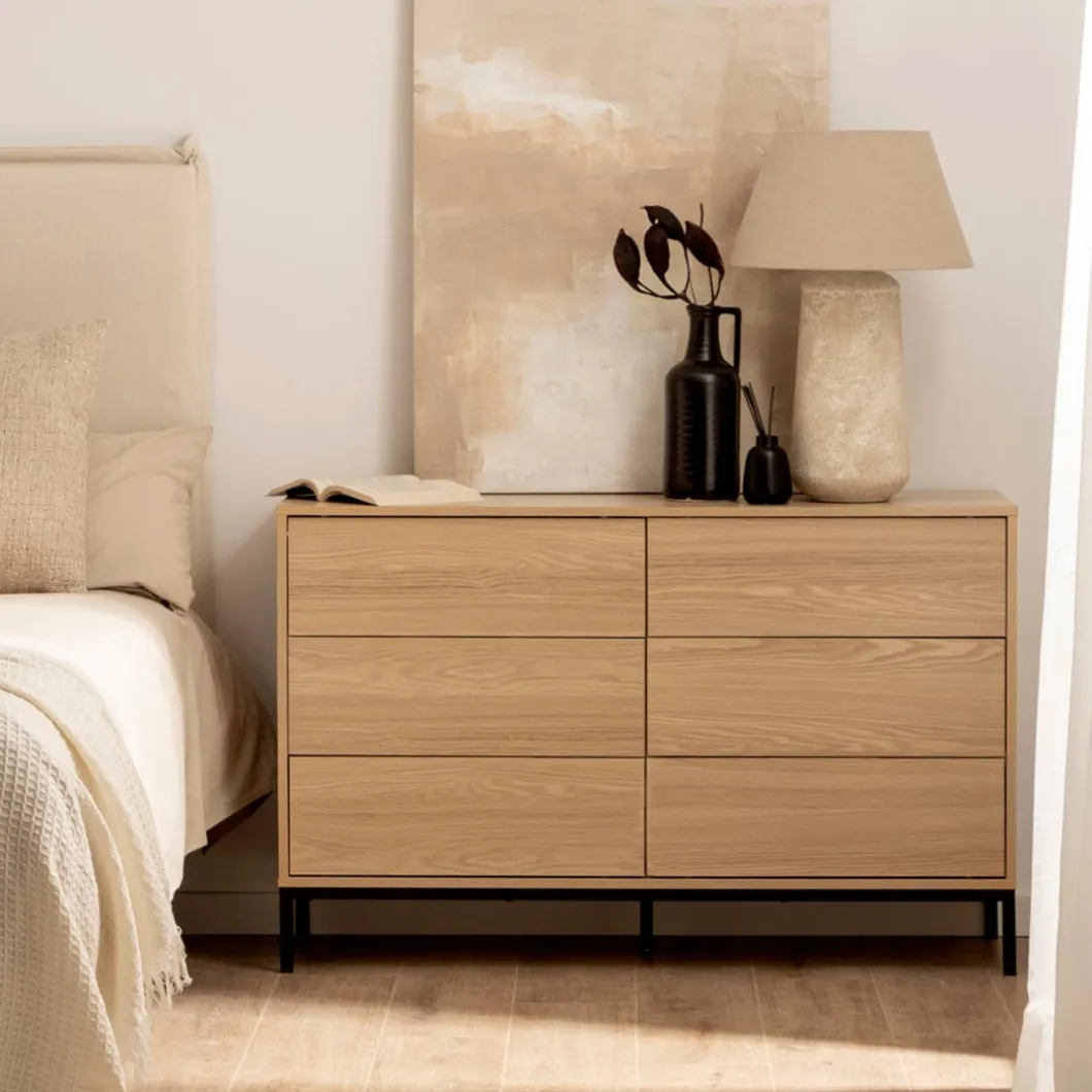 Transforma tu espacio con la cómoda de 6 cajones Remi, una pieza que combina estilo y funcionalidad. Sus seis espaciosos cajones permiten mantener la ropa, accesorios y otros objetos personales bien organizados y al alcance. Ideal para dormitorios, vestidores o cualquier rincón de la casa que necesite un toque de orden y sofisticación. Completa tu hogar con la elegancia y practicidad de la colección Remi.