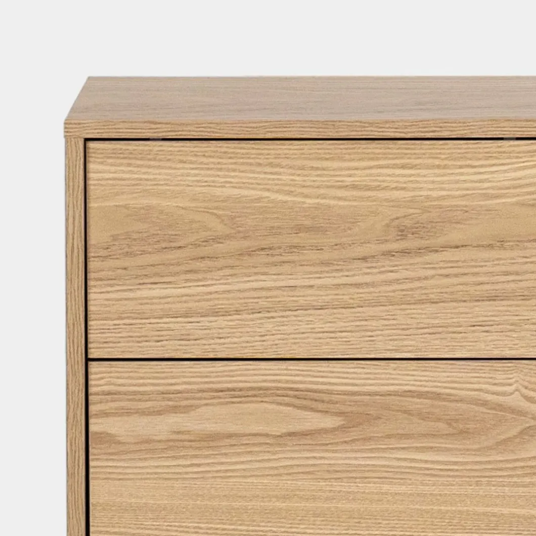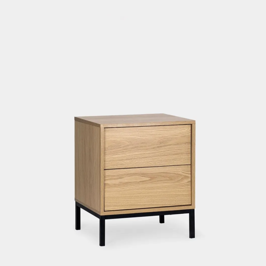 Añade un toque de elegancia y funcionalidad a tu dormitorio con la mesita de noche Remi. Sus dos amplios cajones ofrecen un espacio de almacenamiento práctico y discreto para tus objetos personales. Combínala con los muebles del resto de la colección Remi y consigue un look completo y armonioso para tu hogar.