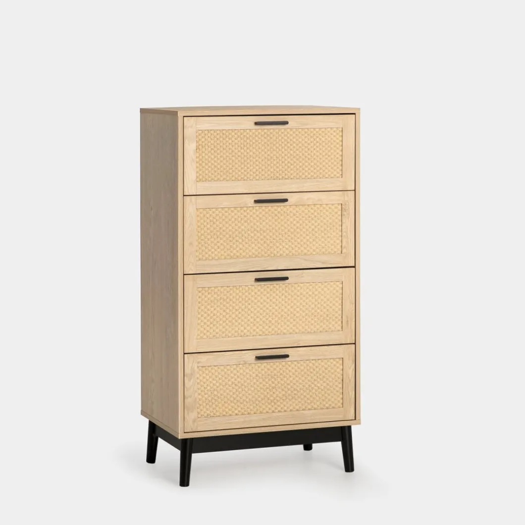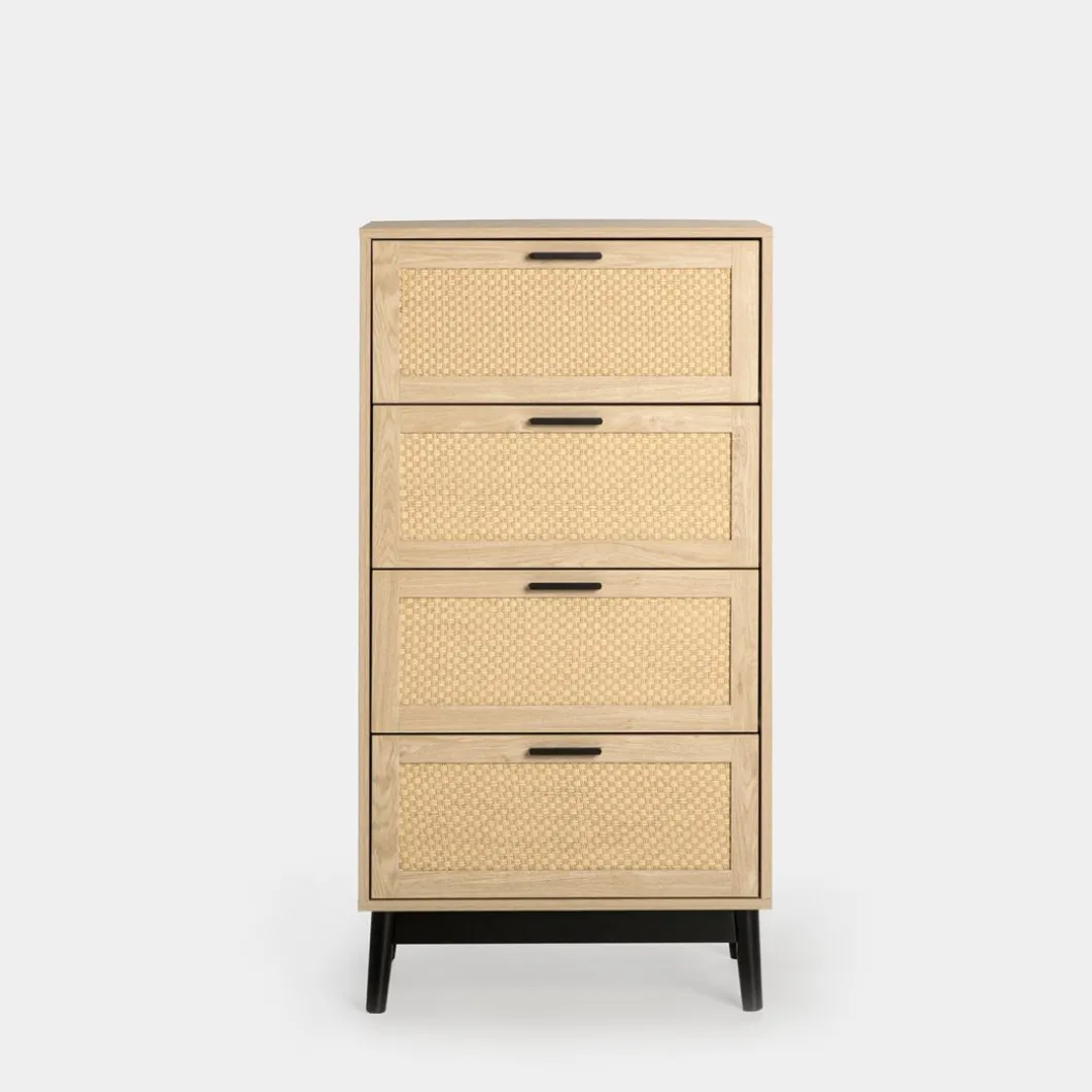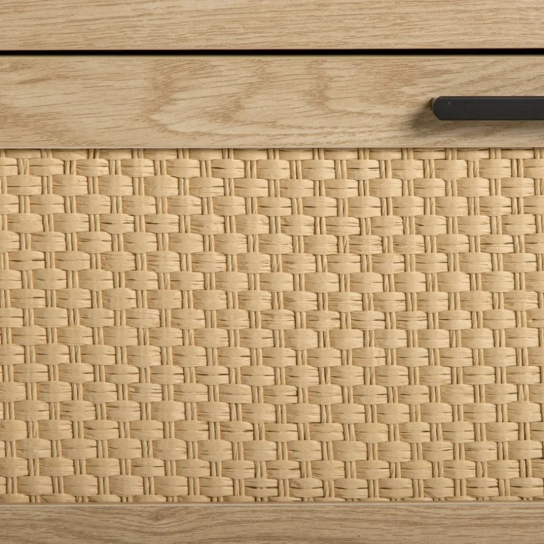 Transforma tu dormitorio en un espacio acogedor y con estilo con el sinfonier Samoa en madera color natural y fibra natural. Con cuatro amplios cajones, esta pieza ofrece un generoso espacio de almacenamiento para ropa, accesorios y objetos personales. Ideal para quienes buscan una pieza versátil y atemporal que complemente la decoración de su hogar.
