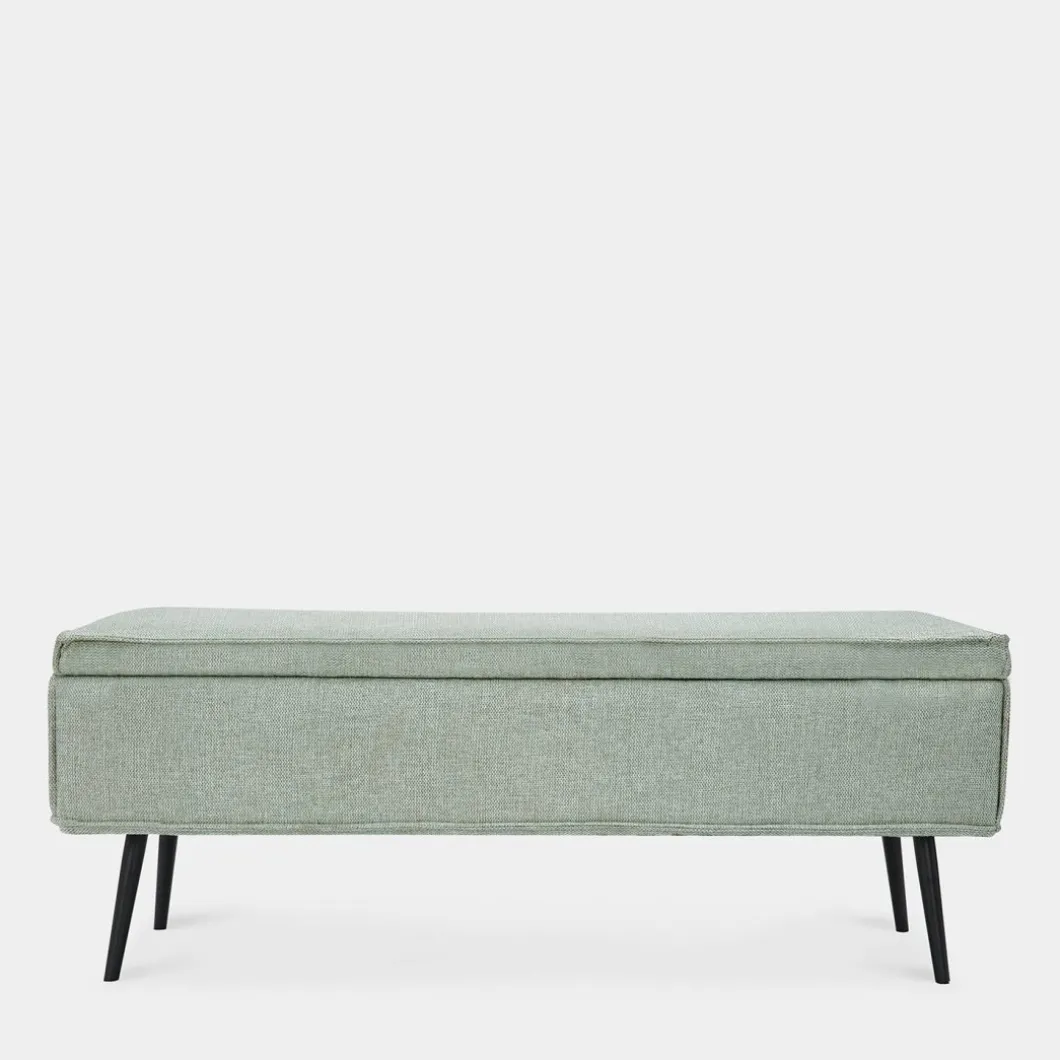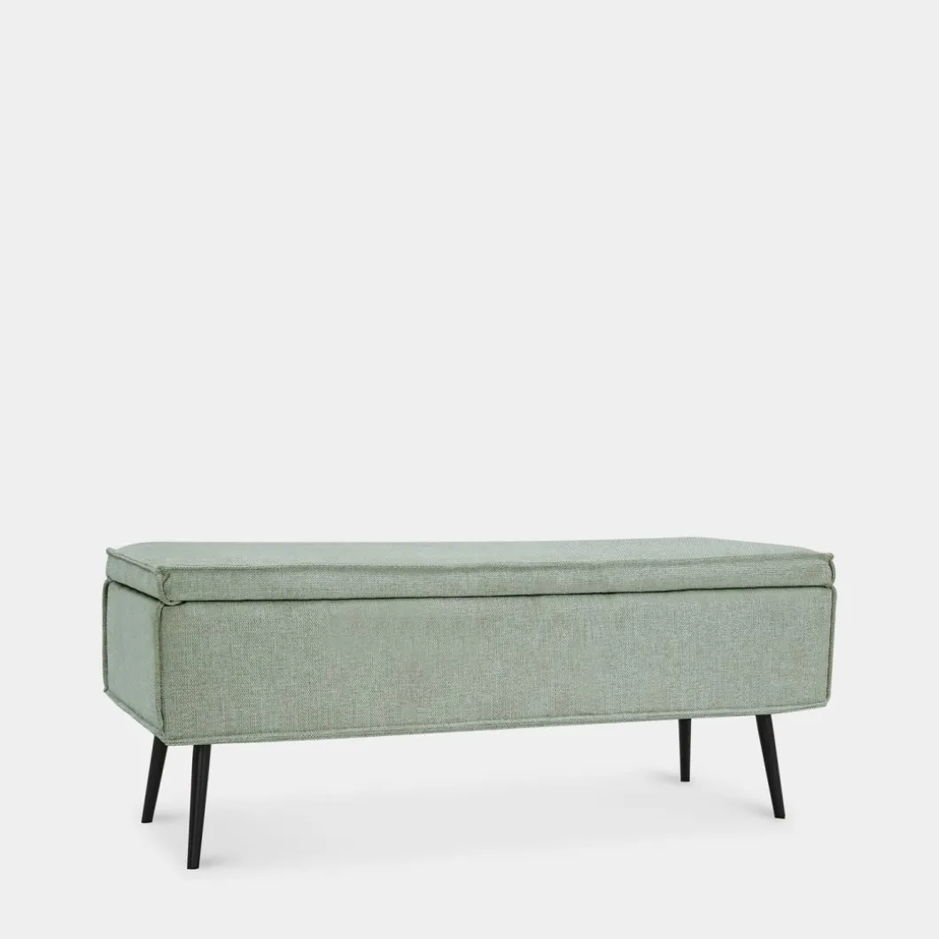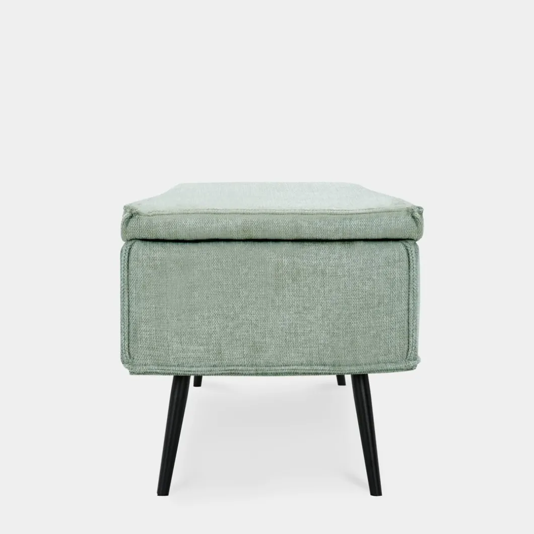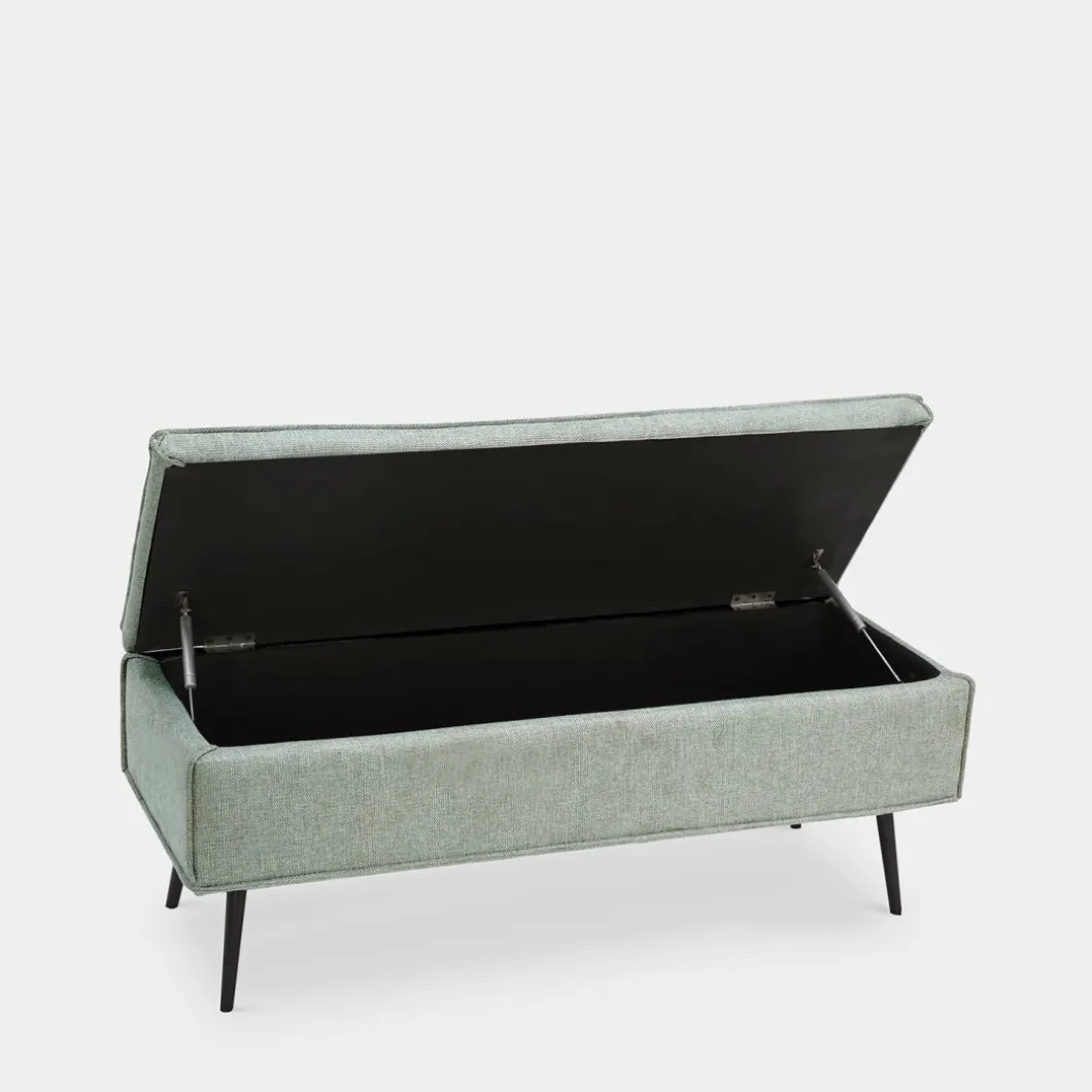 El banco Sanna tapizado en un elegante tono menta es una pieza práctica y estilosa que combina almacenamiento y diseño. Perfecto para colocar a los pies de la cama, en el recibidor o en cualquier espacio que necesite una solución funcional sin renunciar al estilo. Su compartimento de almacenaje es ideal para guardar mantas, cojines u otros objetos, manteniendo tu hogar organizado y con un toque moderno.