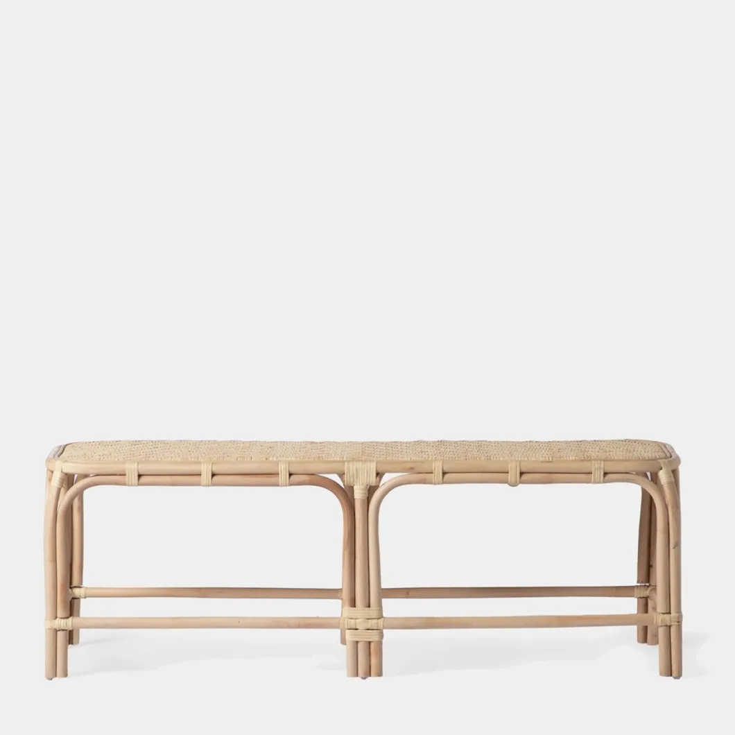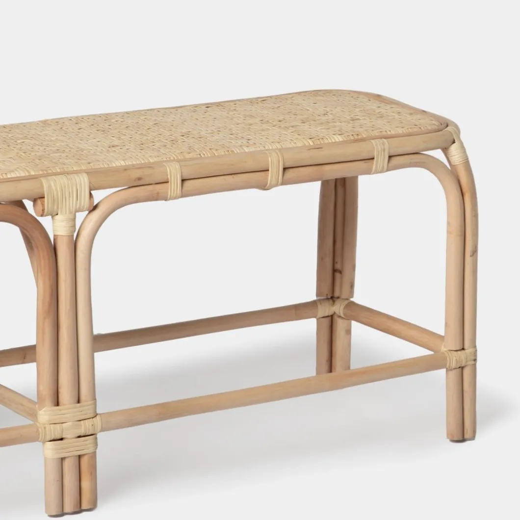 El banco Saro elaborado en ratán natural trenzado a mano aportará un toque natural ideal a tu salón, recibidor o dormitorio. Es un asiento funcional y versátil que podrás utilizar como pie de cama o como banco para el recibidor o salón. Está fabricado artesanalmente con ratán natural por lo que puede presentar alguna irregularidad propia de la naturaleza del material.