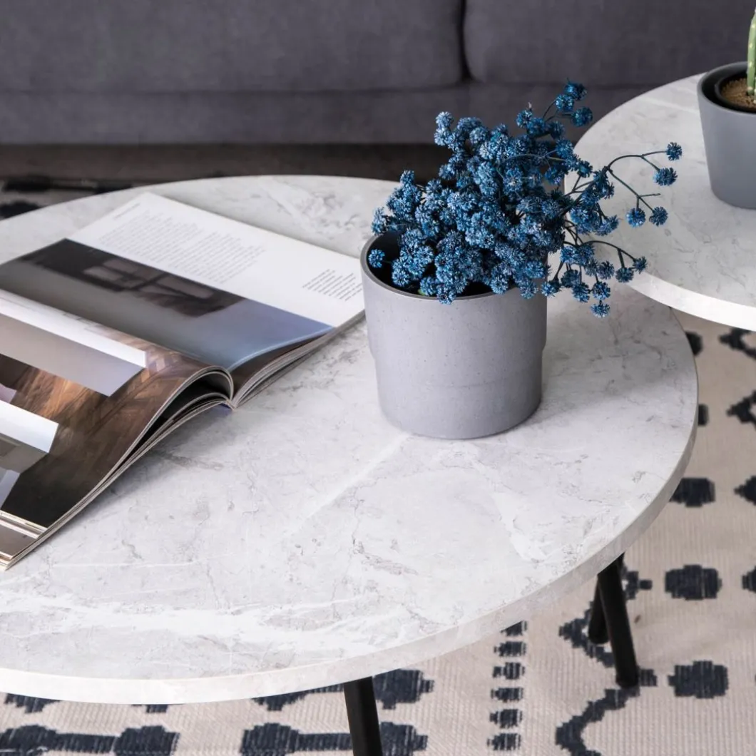 La mesa de centro Siena es la elegancia en estado puro, es diseño propio. De estilo nórdico, con aires daneses quedará genial delante de tu sofá en la sala de estar.Cuando hablamos de Siena, hablamos de diseño en mayúsculas, una de sus características más destacable es su sobre con efecto marmolado, sin duda; un detalle que derrocha estilo.Combínalo con otras piezas de la colección.