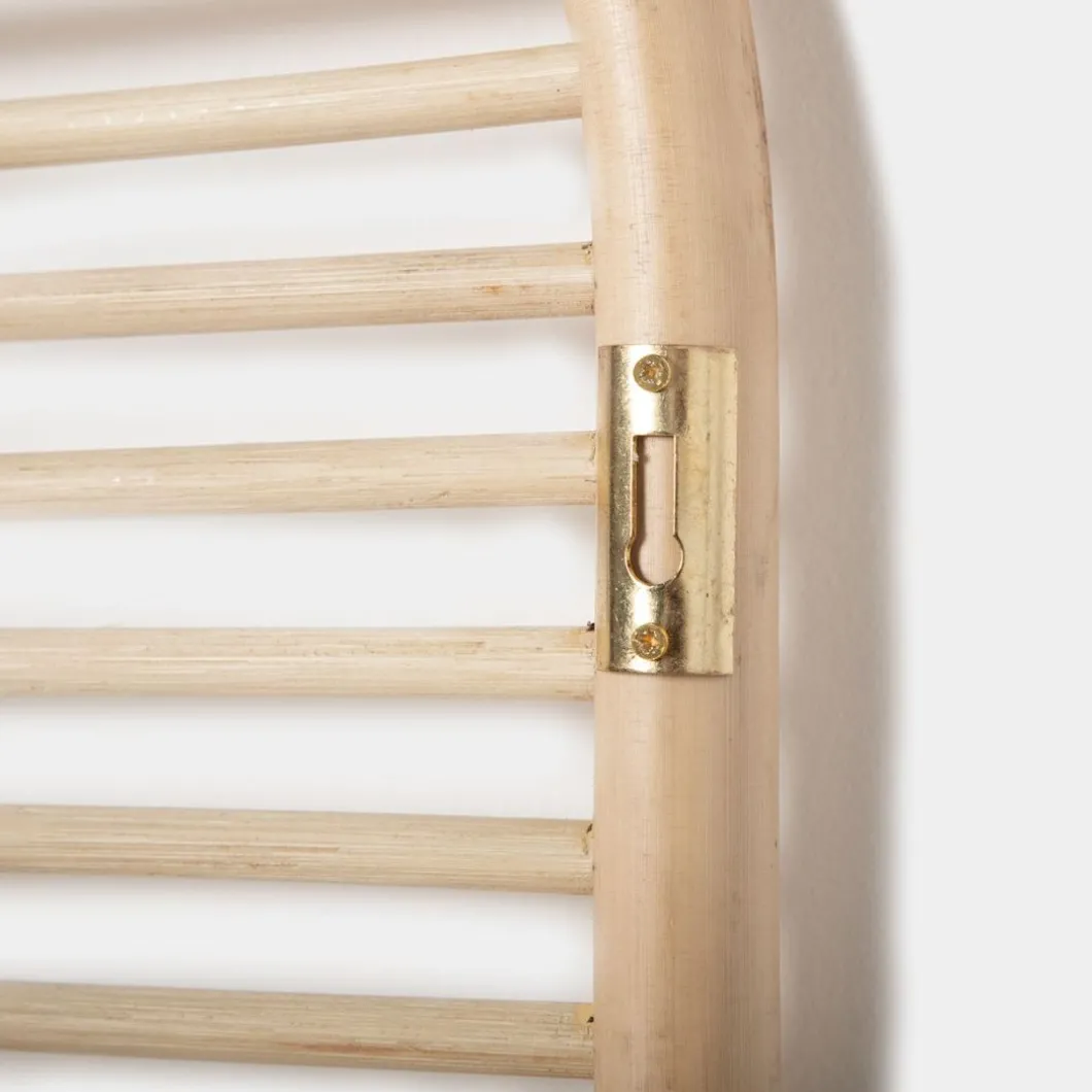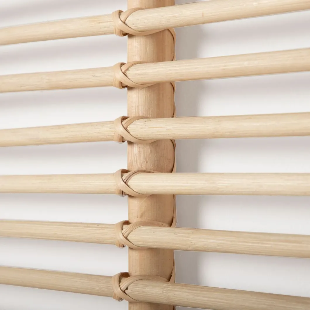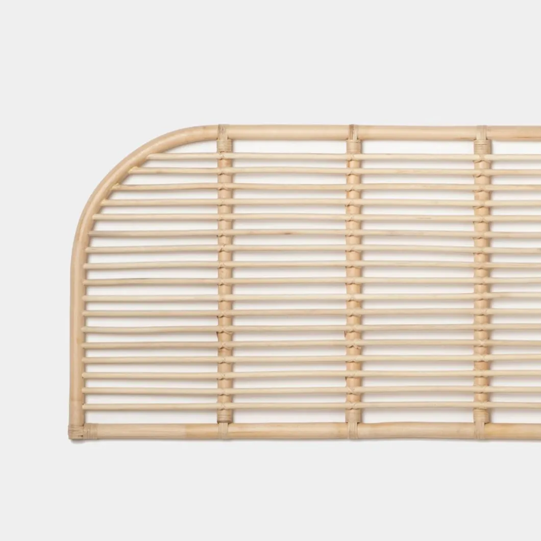 Consigue un dormitorio cálido y natural con el cabecero de cama de ratán natural Siloa. Ha sido trenzado a mano con ratán natural, por lo que puede presentar alguna irregularidad propia de la naturaleza del material y del proceso de fabricación artesanal. Se puede utilizar en camas de 135, 150 y 160. Requiere anclaje a pared. La tornillería no está incluida.