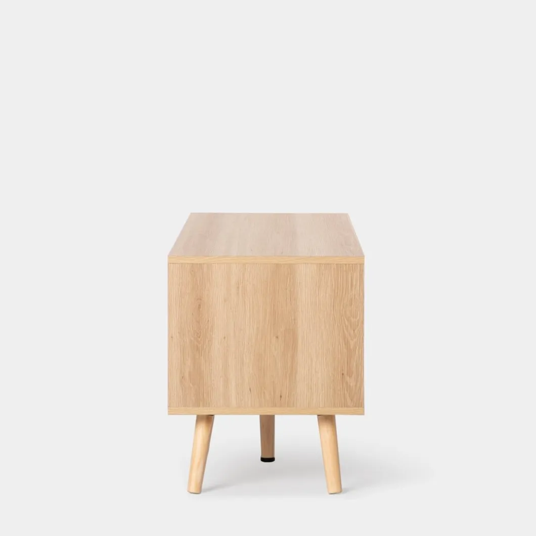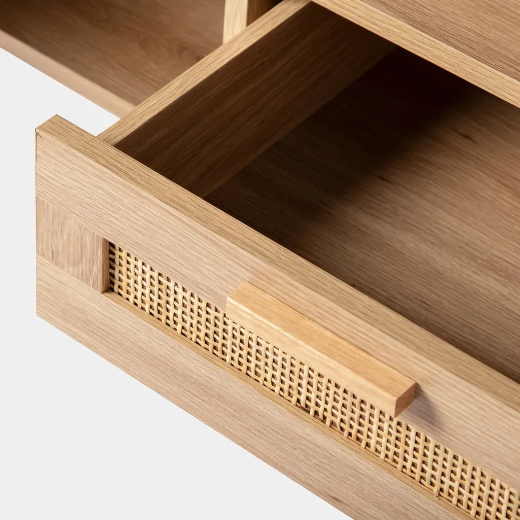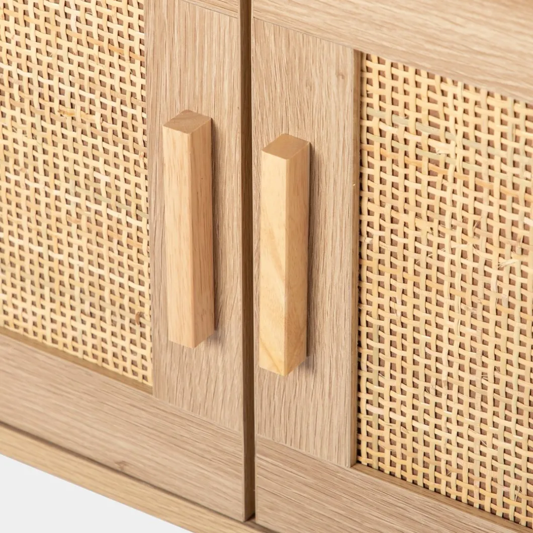 Con el mueble TV de 160 en ratán natural conseguirás darle un toque natural y vintage a tu salón/comedor. Cuenta con dos puertas, un cajón y un estante en el que podrás almacenar todos tus accesorios multimedia y mantener el orden en tu hogar. Combínalo con muebles de la misma colección y crea espacios con encanto.