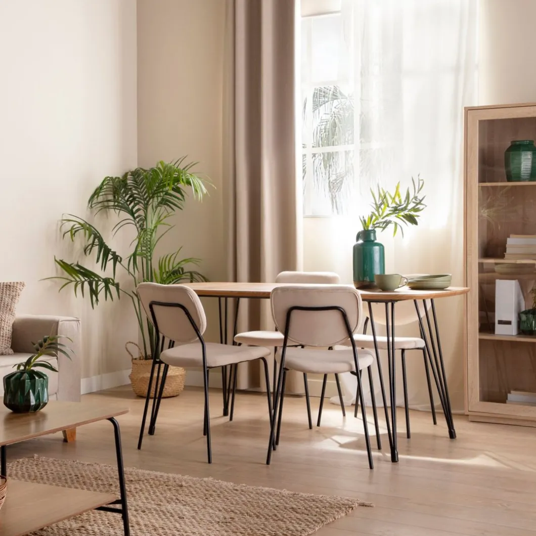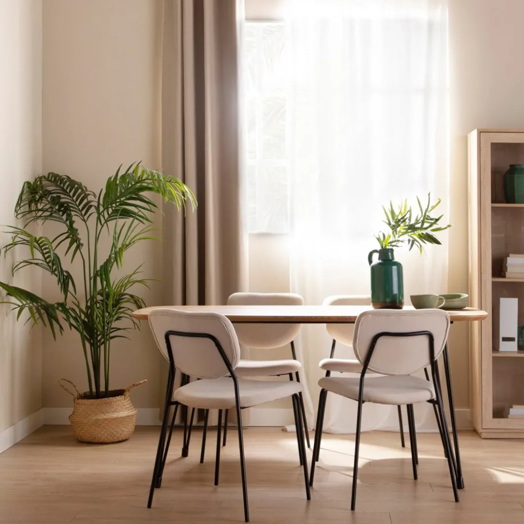 ¡Aprovéchate de este pack! La silla de comedor Taylor en tercipelo beige es la apuesta perfecta para los amantes del diseño atemporal. Sus patas metálicas en color negro, le aportan además un carácter sofisticado y una polivalencia que le permite ser también una buena alternativa como silla de escritorio. Combínalo a tu gusto con alguno de los 3 acabados disponibles.
