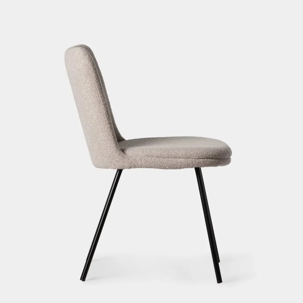 Añade un toque de estilo y confort a tu comedor con la silla de comedor Tera. Su suave tapizado en bouclé gris topo y sus patas metálicas negras ofrecen un equilibrio perfecto entre elegancia y comodidad. Disponible en varios tapizados, elige el que mejor se adapte a tu estilo decorativo.