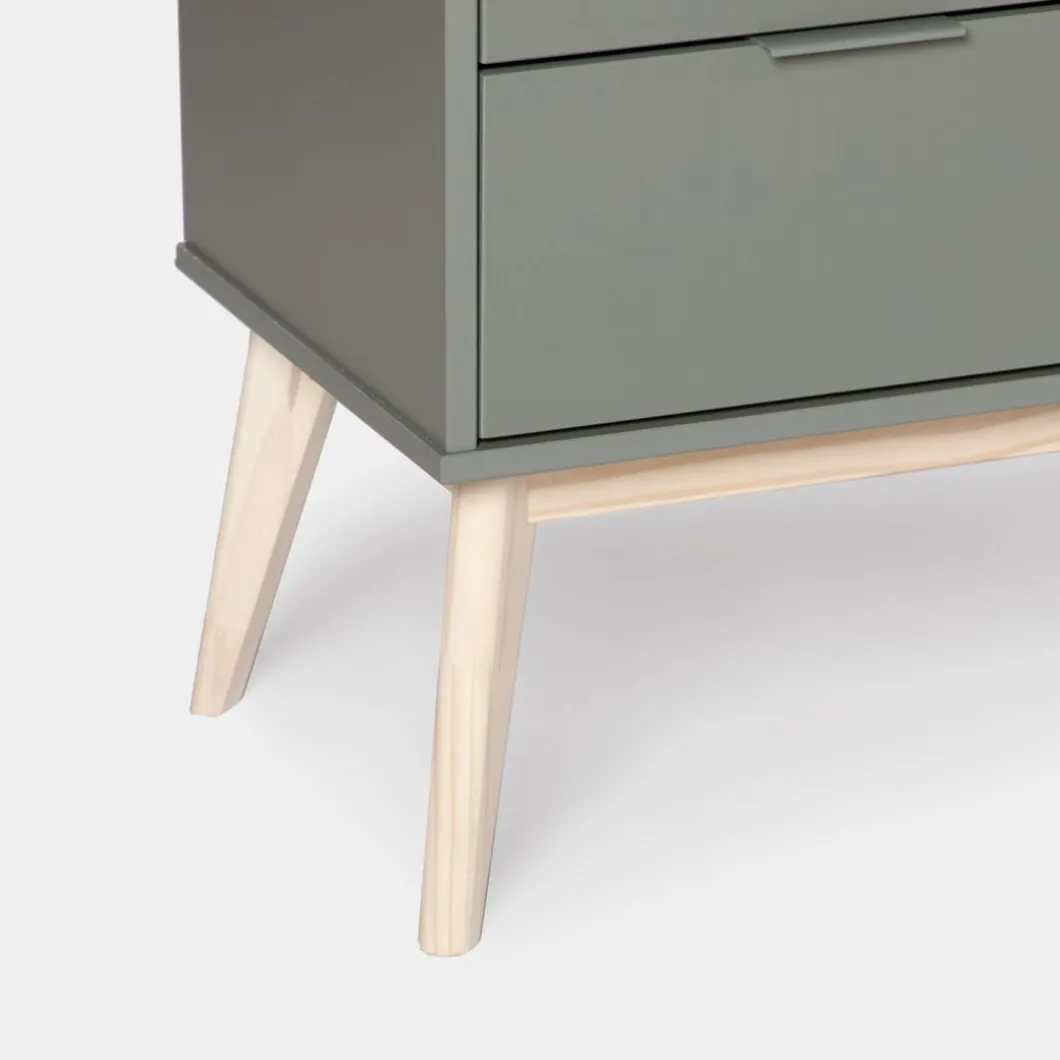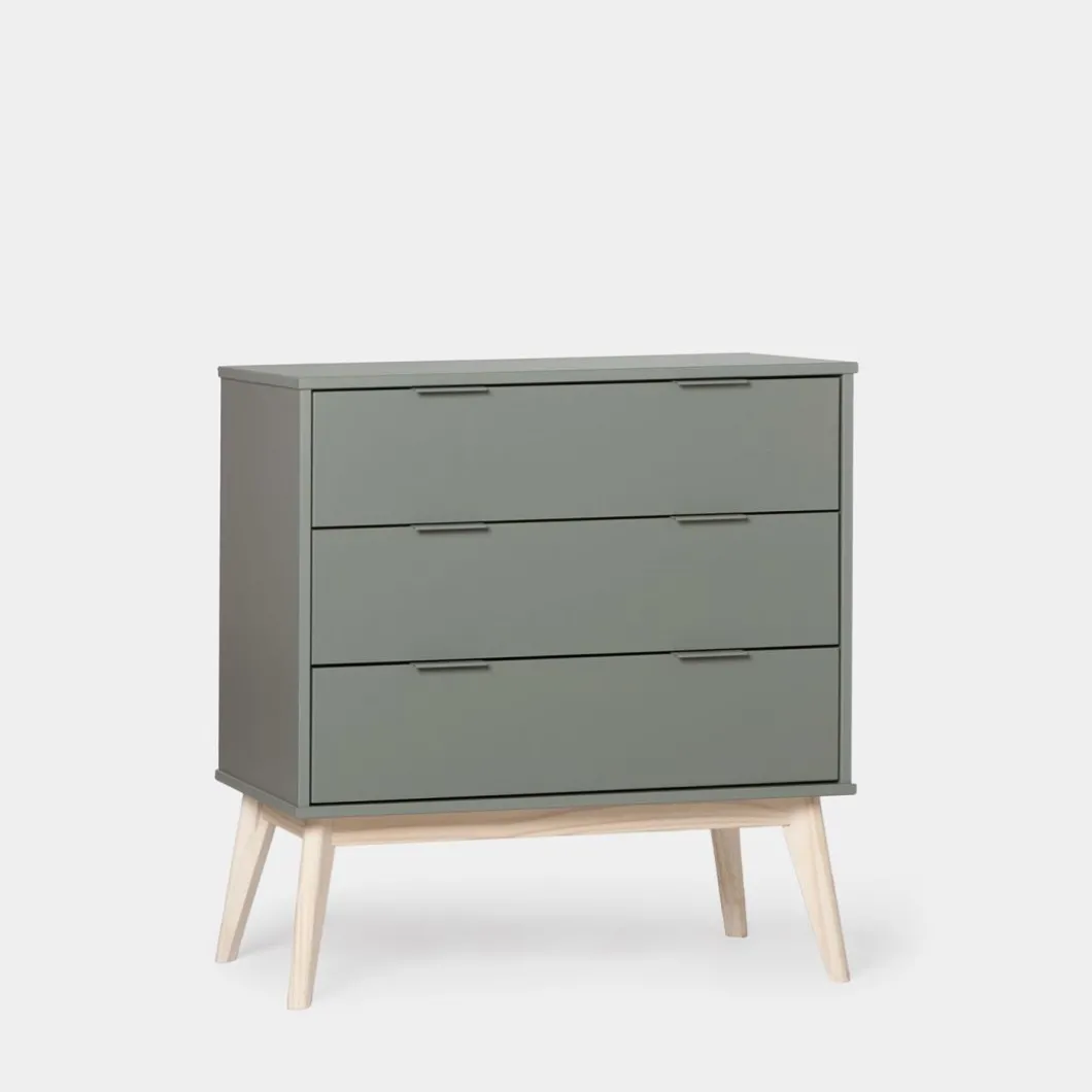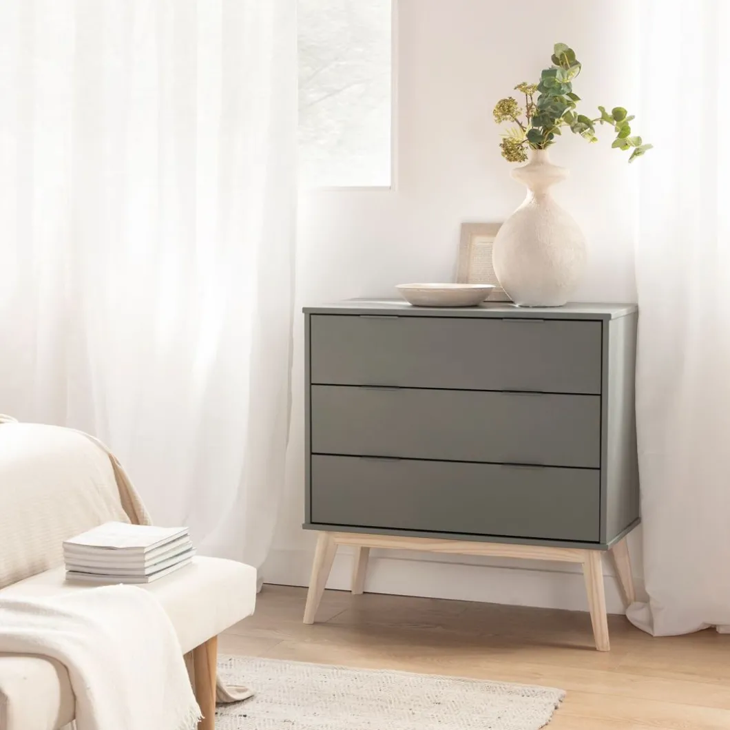 Con la cómoda Troy lacada en verde antracita conseguirás un extra de almacenaje que te ayudará a mantener el orden en casa. Cuenta con tres cajones de gran capacidad en los que podrás almacenar todo aquello que no necesites tener a la vista. Para mayor estabilidad del mueble, aconsejamos su anclaje a la pared.